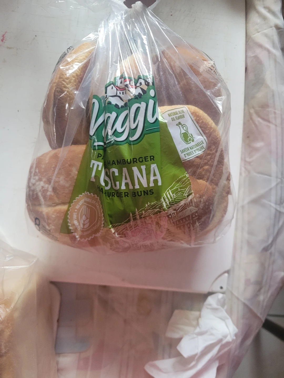 Selling a bag of Viggi Toscana hamburger buns, perfect for your next BBQ! They have a natural olive oil flavour that makes them extra delicious