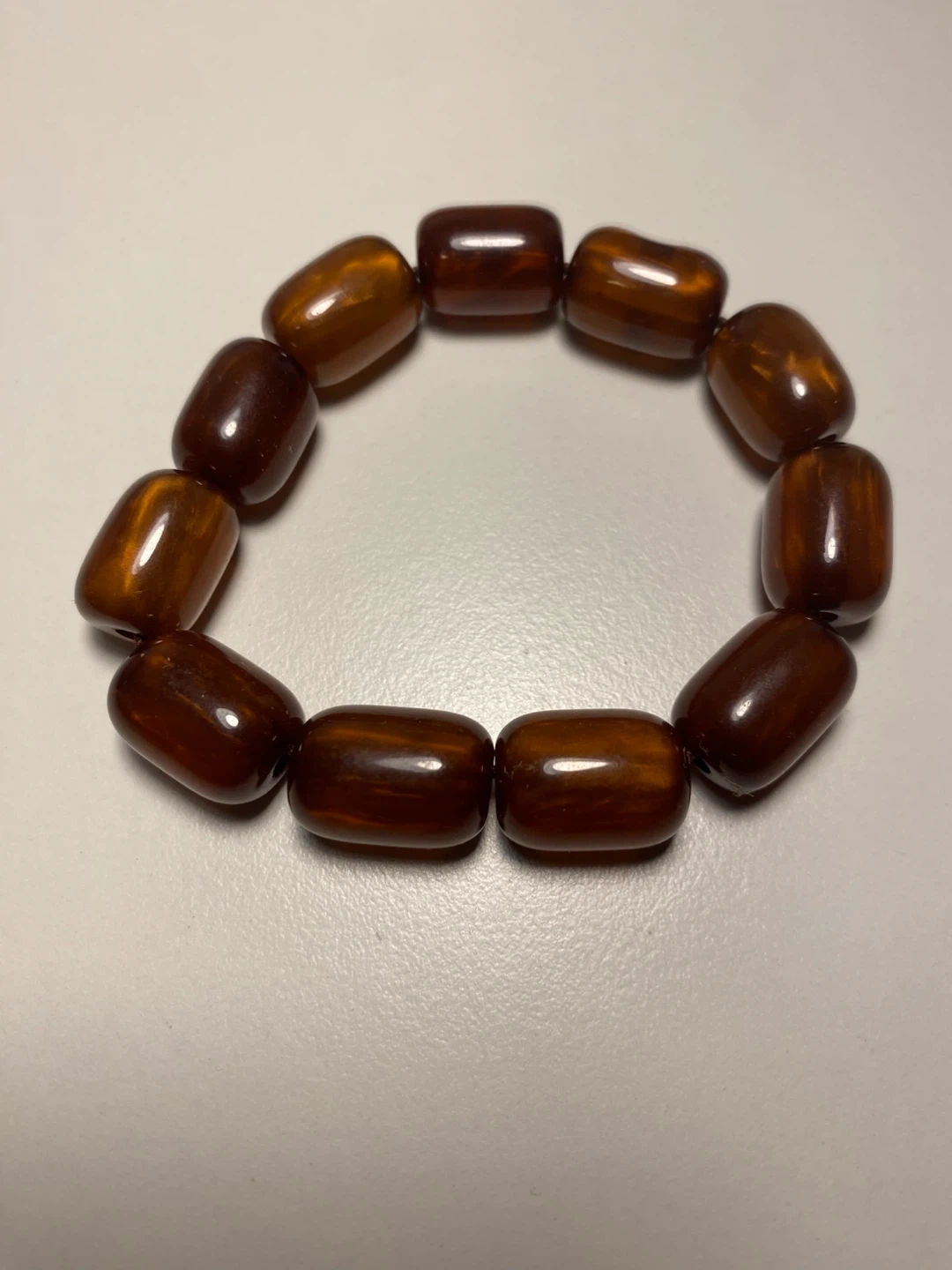 Here's a nice dark brown oval beaded bracelet perfect for adding a touch of warmth to any outfit! The beads have a lovely, smooth texture and a rich, earthy tone. It's in great condition and ready to wear!