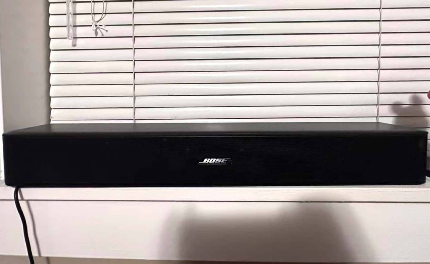 Selling a Bose Solo 5 TV soundbar in black. It's in great condition and ready to enhance your TV audio experience. This sound system comes with a universal remote control for easy operation. Save on used - like new!