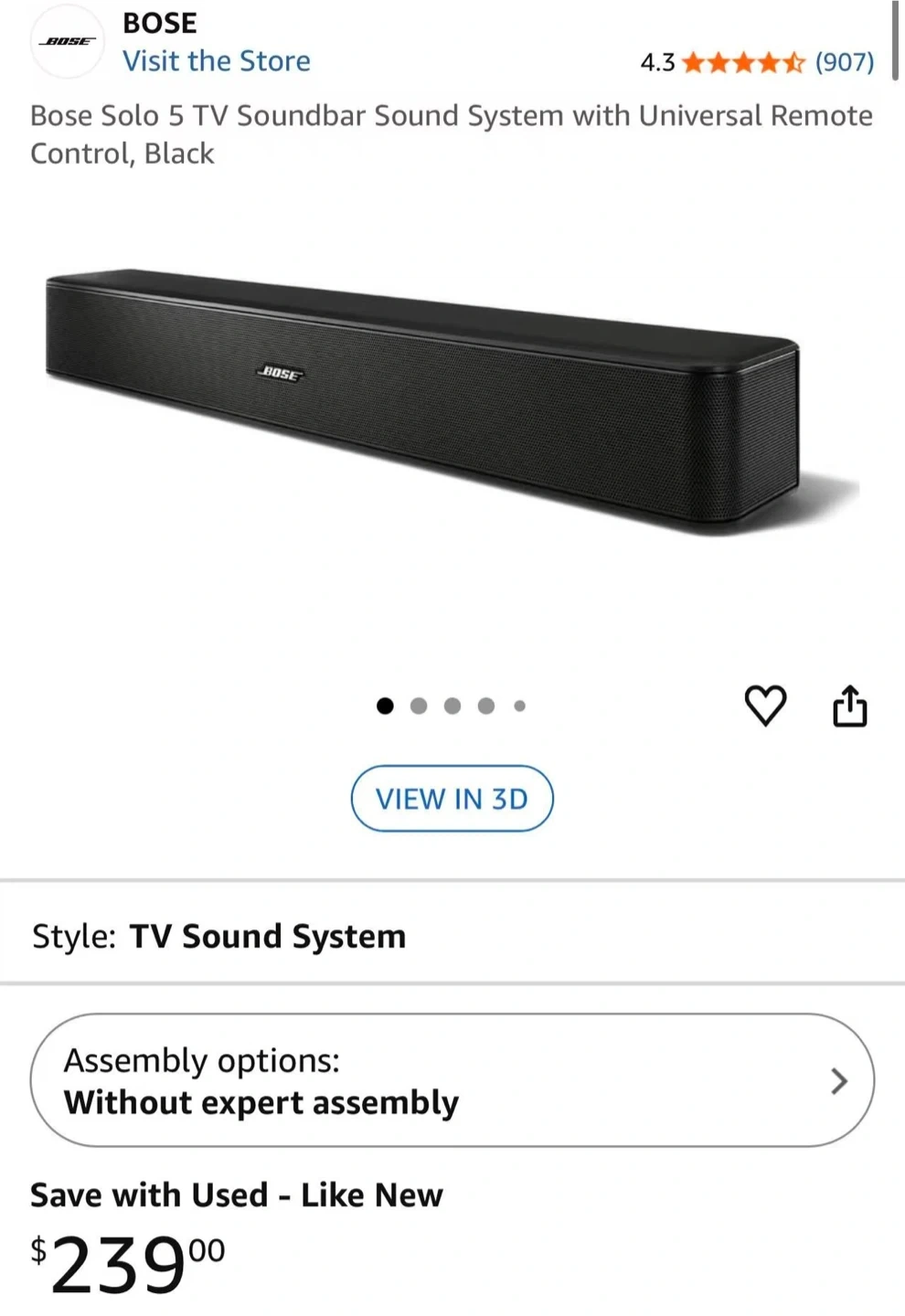 Bose Solo 5 TV Soundbar - Black