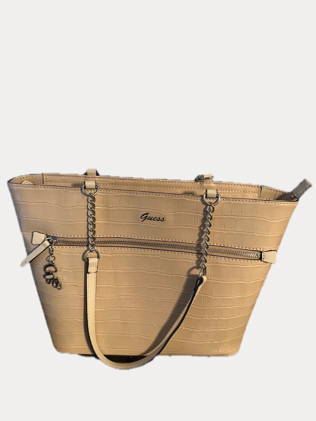 Selling a Guess tote bag in a lovely beige colour. It's in great condition and features a stylish crocodile-like texture. Perfect for everyday use!