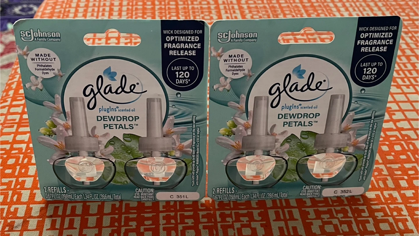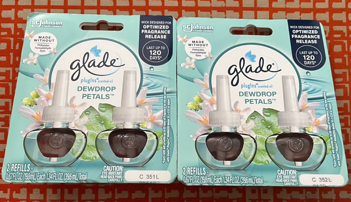 Selling two packs of Glade PlugIns Scented Oil refills in the Dewdrop Petals scent