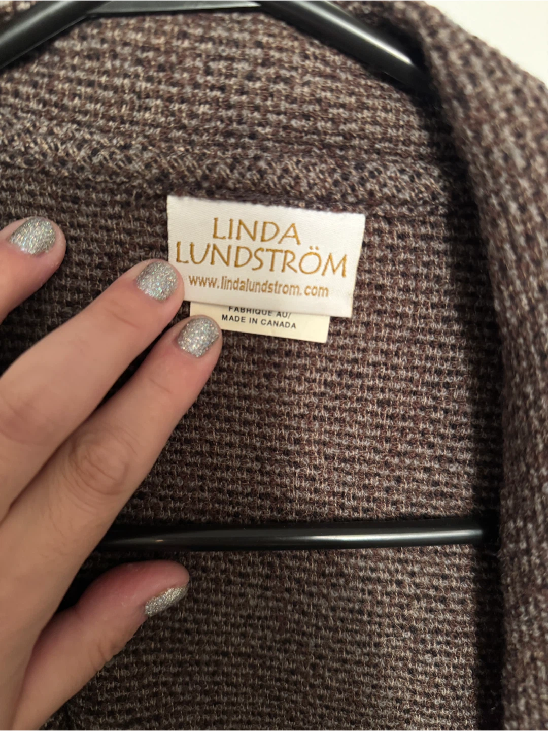 1 / 61 / 6Buy & SellLinda Lundstorm Jacket/Sweater/CardiganLinda Lundstorm Jacket/Sweater/Cardigan$25Made in Canada during the 80's. Very cool piece!ConditionLike newWHERE TO MEET36 Lisgar StView MapSELLERverifiedShawnWest Queen West22618 reviews0 chats·3 favorites·42 viewsSEND CHAT TO SELLERHi Shawn! I’m interested in your listing.Hi Shawn! I’m interested in your listing.Get the Karrot app to chatSign In to chat
