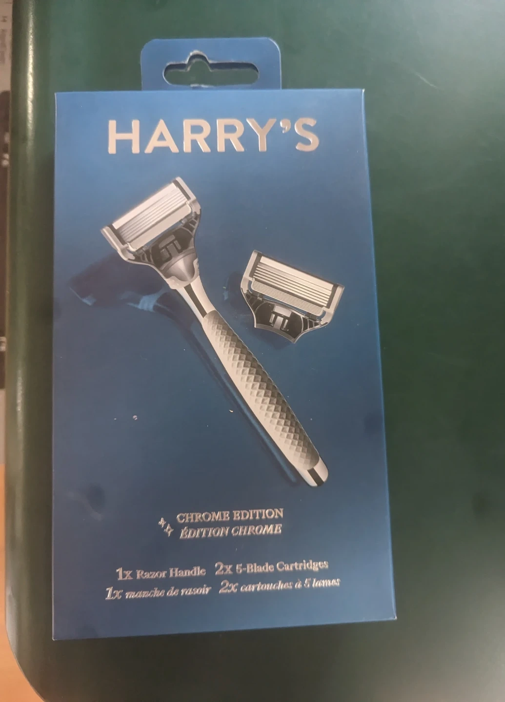I'm selling a brand new Harry's Chrome Edition razor! It has 5 German blades for a close and comfortable shave. The lubricating strip ensures a smooth, even glide. Comes with 1 razor handle and 2 5-blade cartridges. The box is included