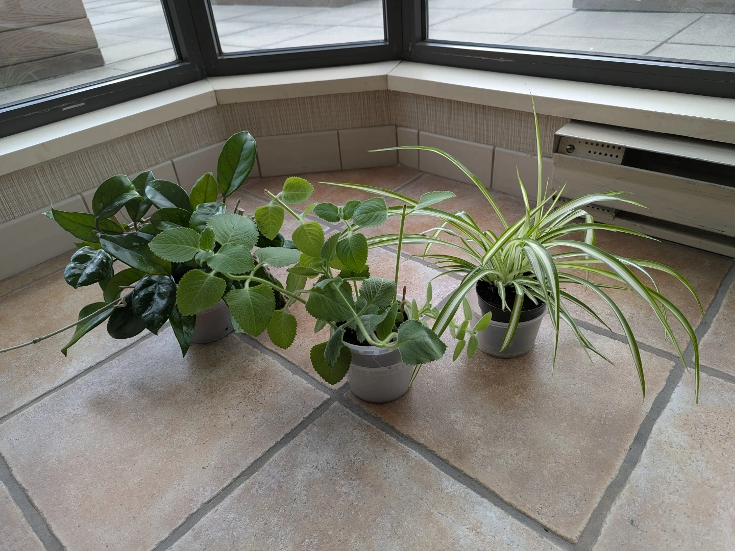 Indoor plants - Hoya Carnosa, Spider Plant and Indian Borage