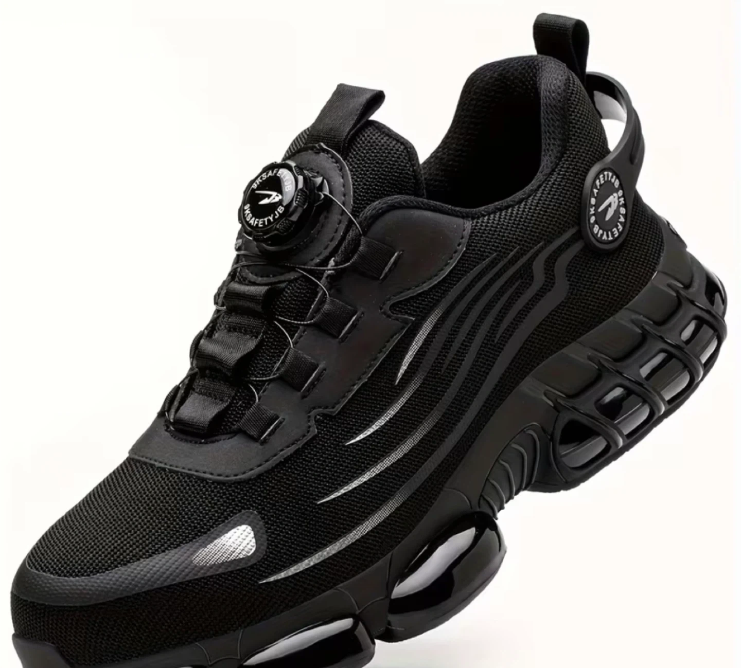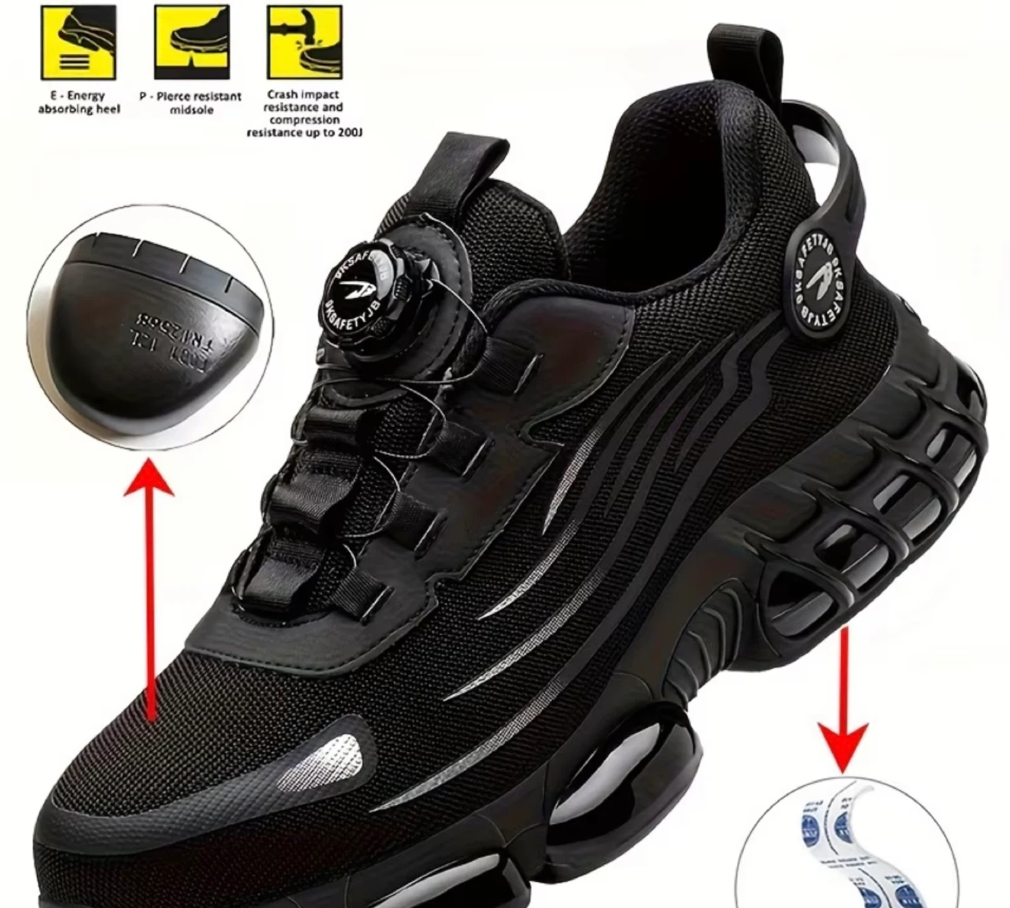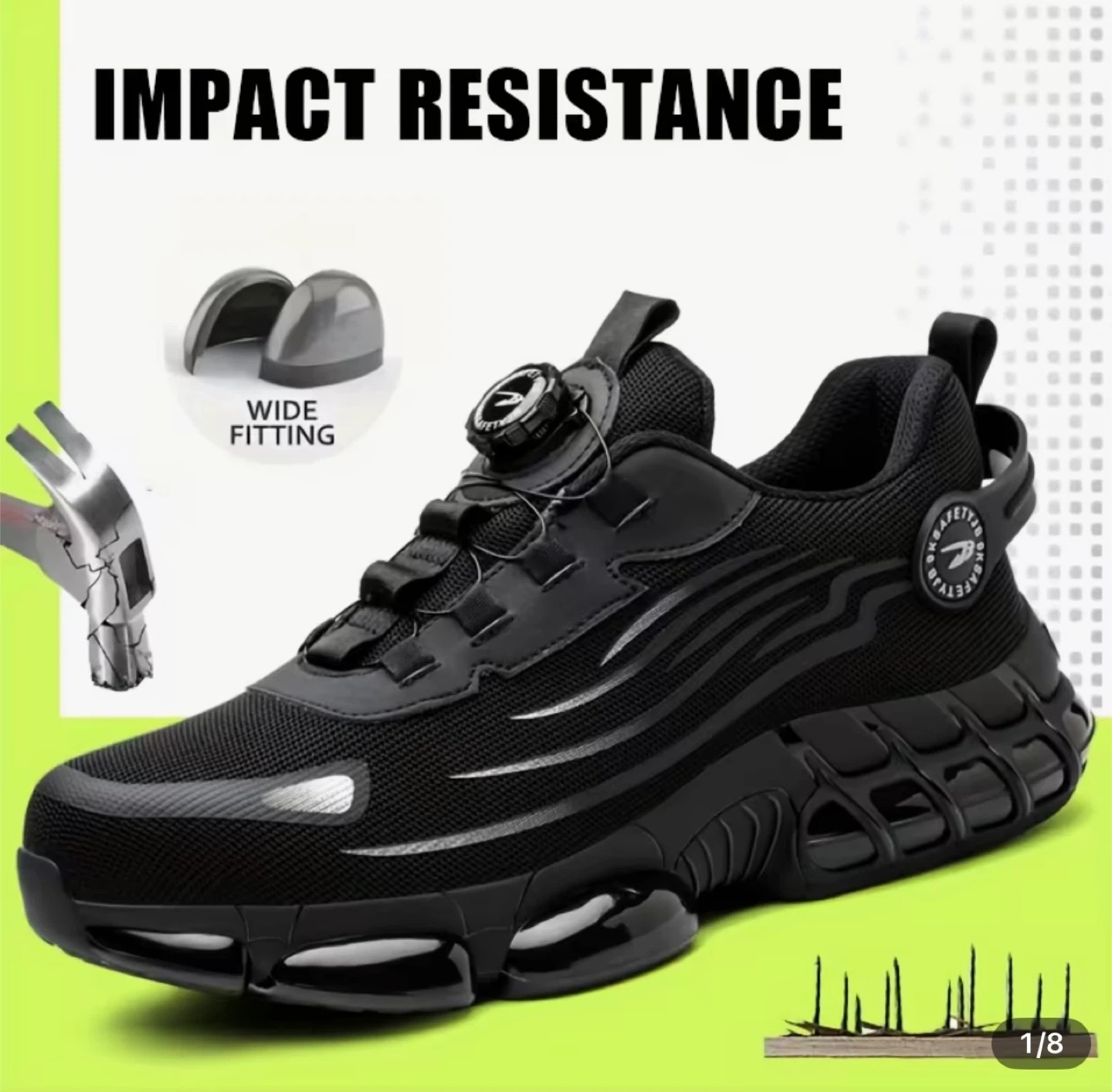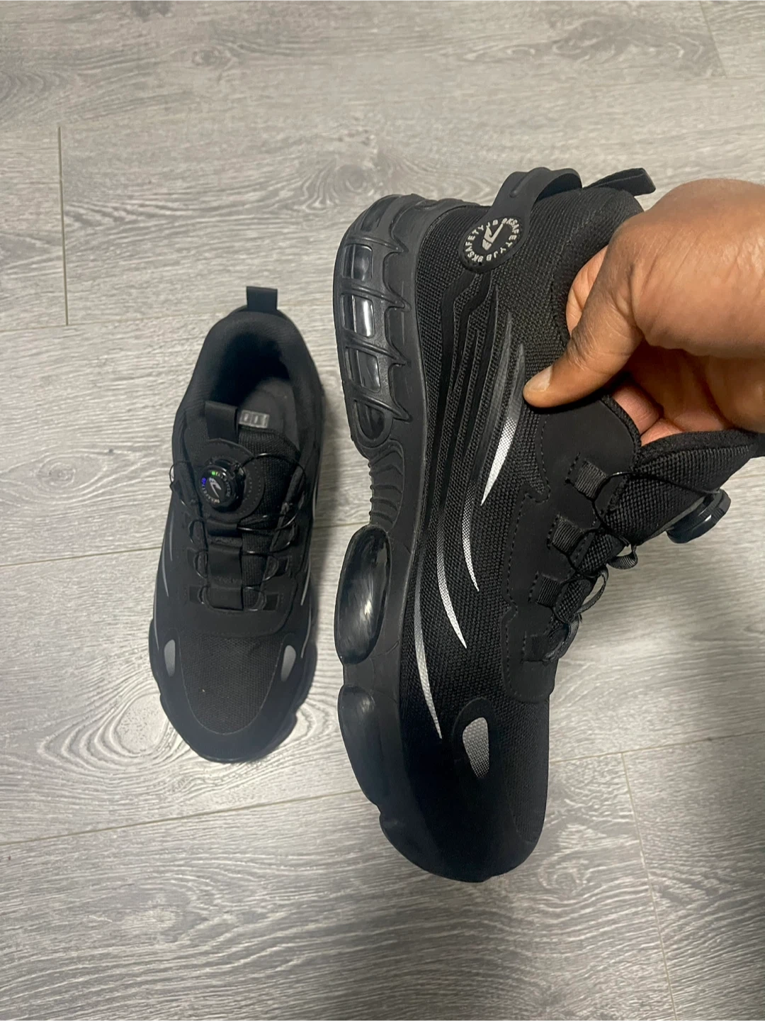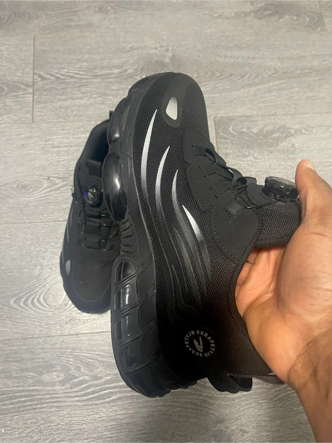 Selling a pair of black OKSAFE steel- toe safety shoes! They feature: