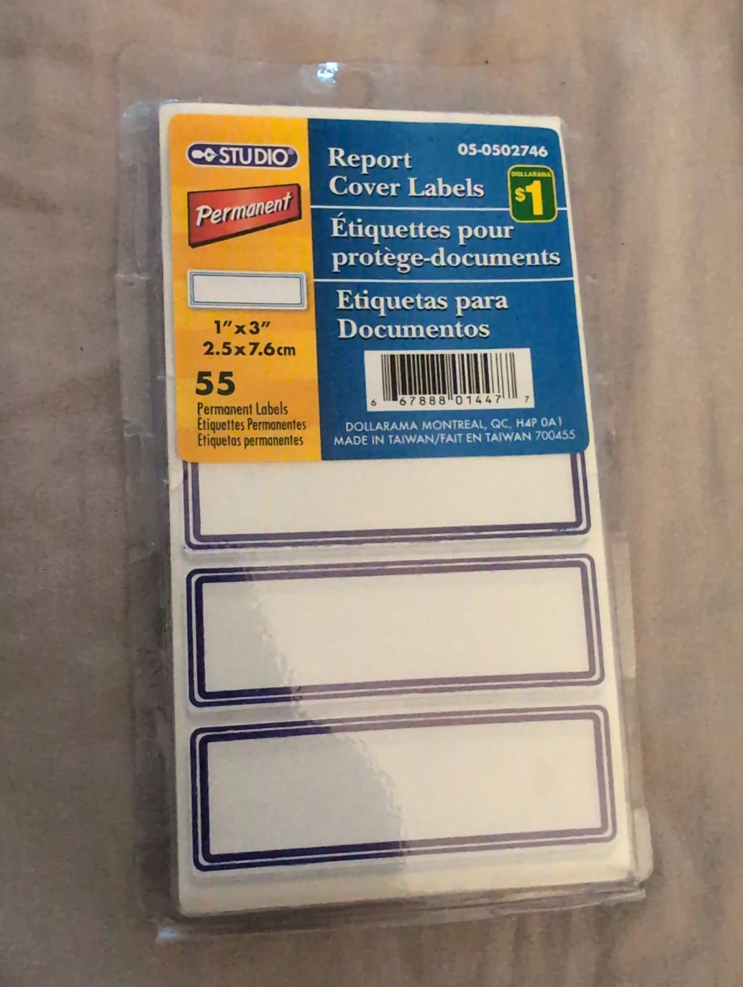 Studio Report Cover Labels, permanent labels for documents. Each label is 1"x3" (2.5x7.6cm). There are 55 labels in total in the pack. Originally from Dollarama for $1