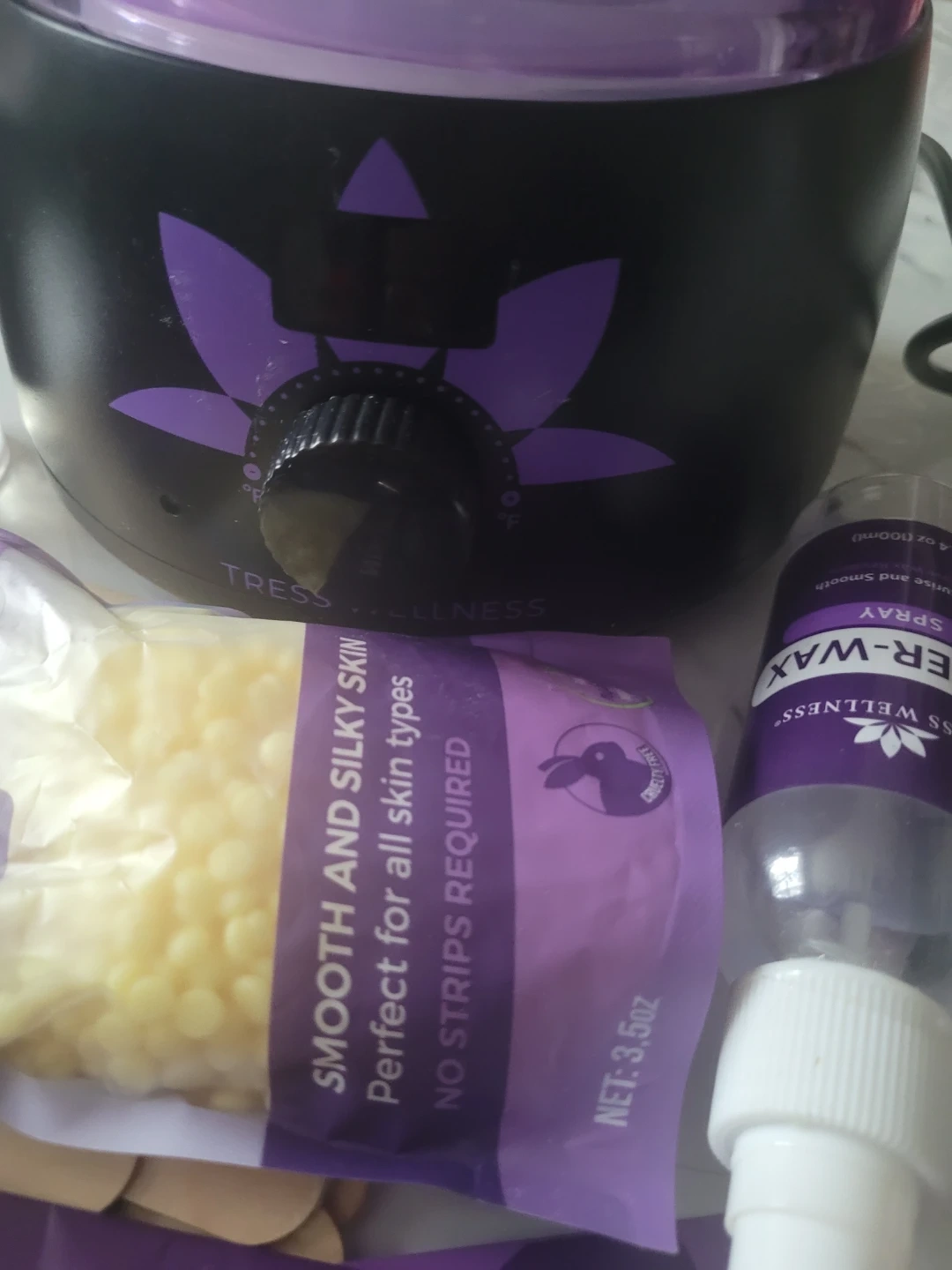 Selling a Tress Wellness waxing kit! It comes with everything you need for smooth and silky skin. The kit includes wax beads (3.5oz), pre-wax spray (4 oz / 100ml), and the wax warmer. Perfect for all skin types and no strips are required!
