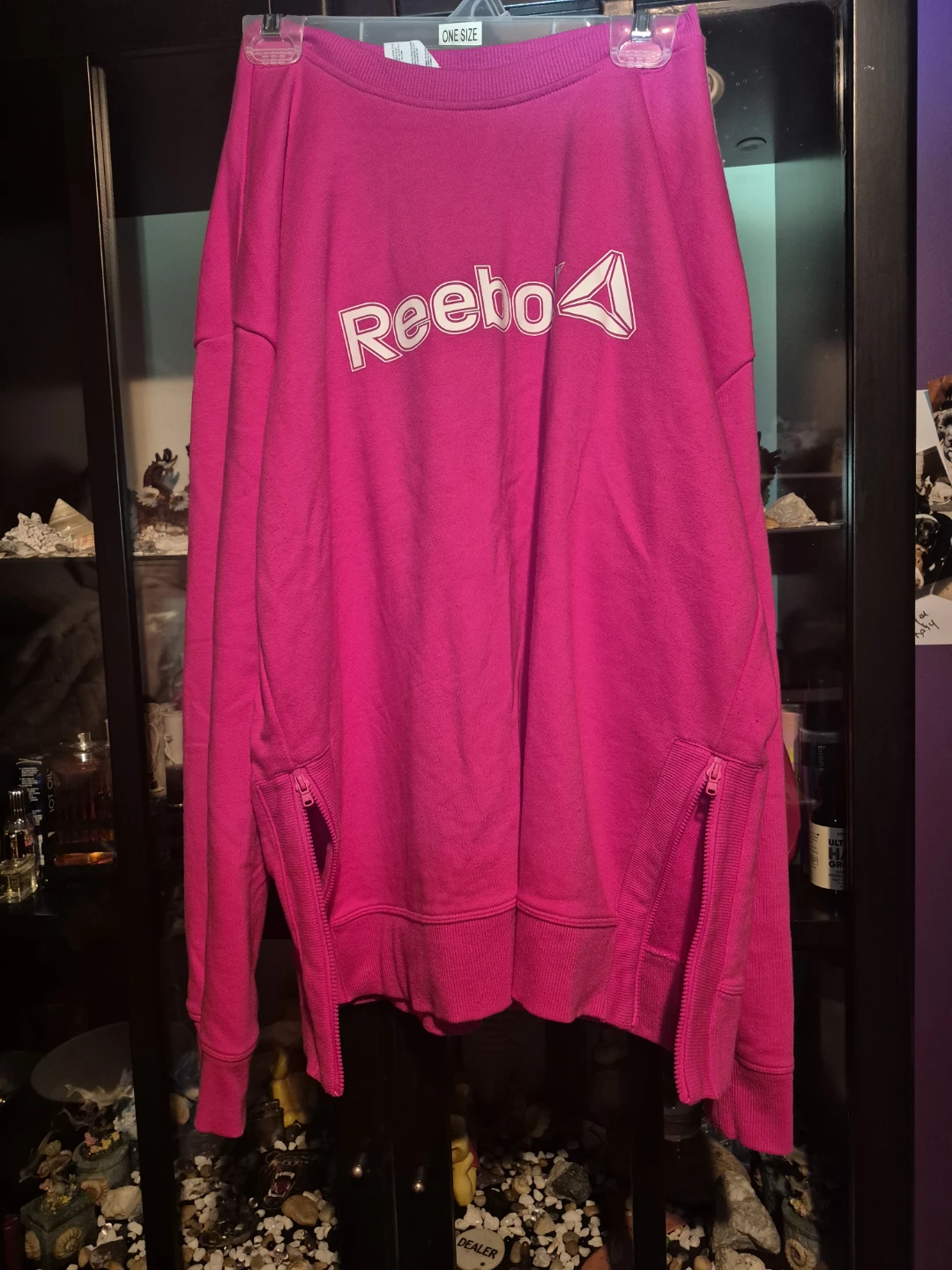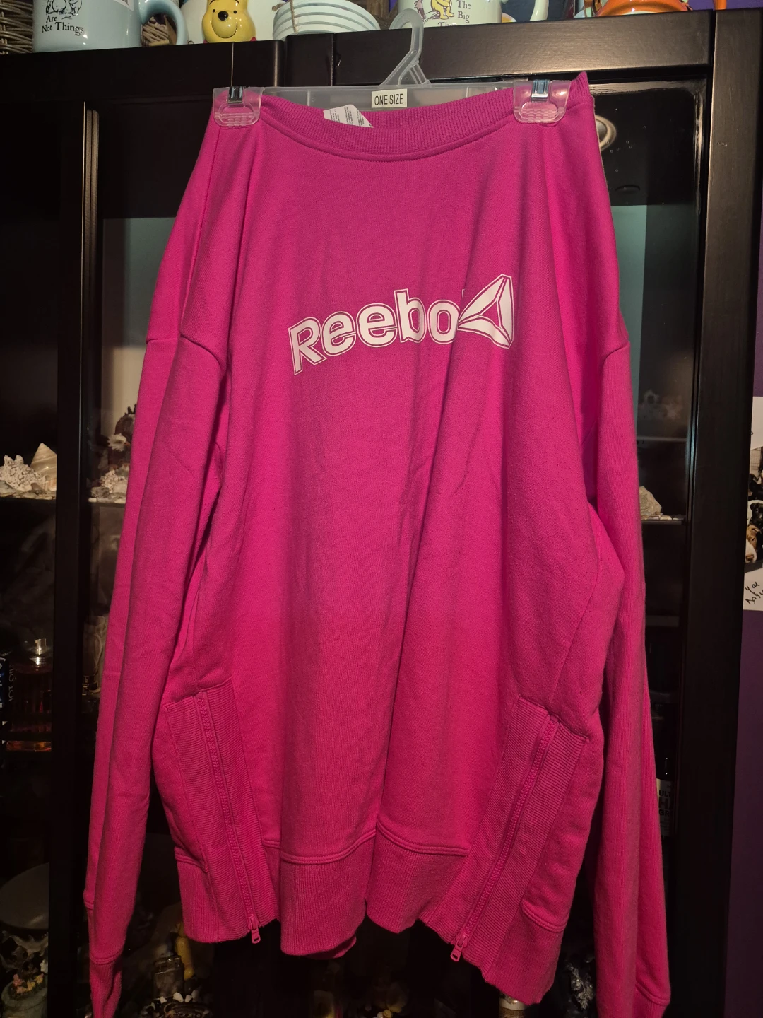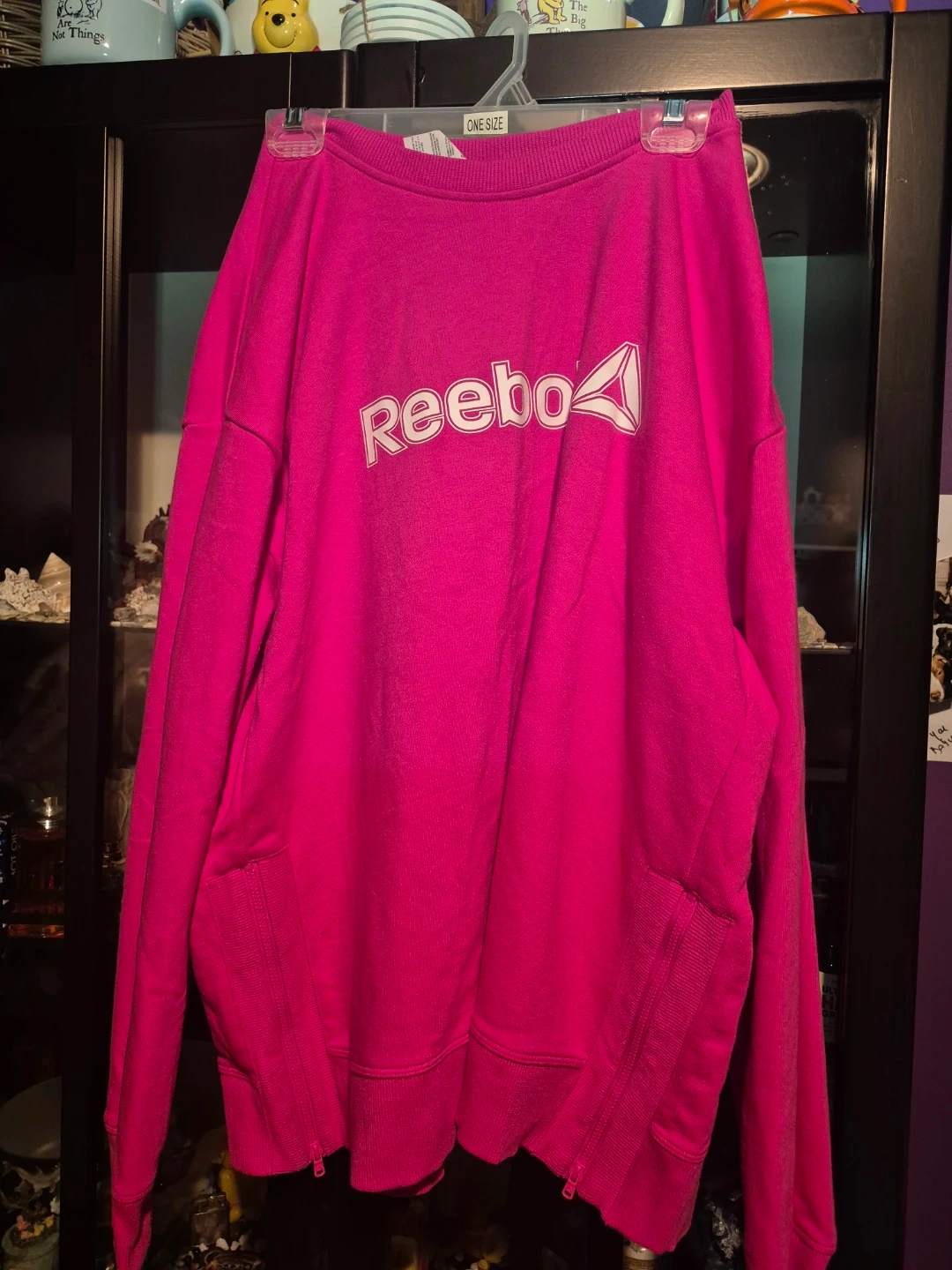 Cozy Reebok sweatshirt in a vibrant pink! It's a size XL/EG/TG and made of 62% cotton and 38% polyester. Perfect for staying comfy and stylish!