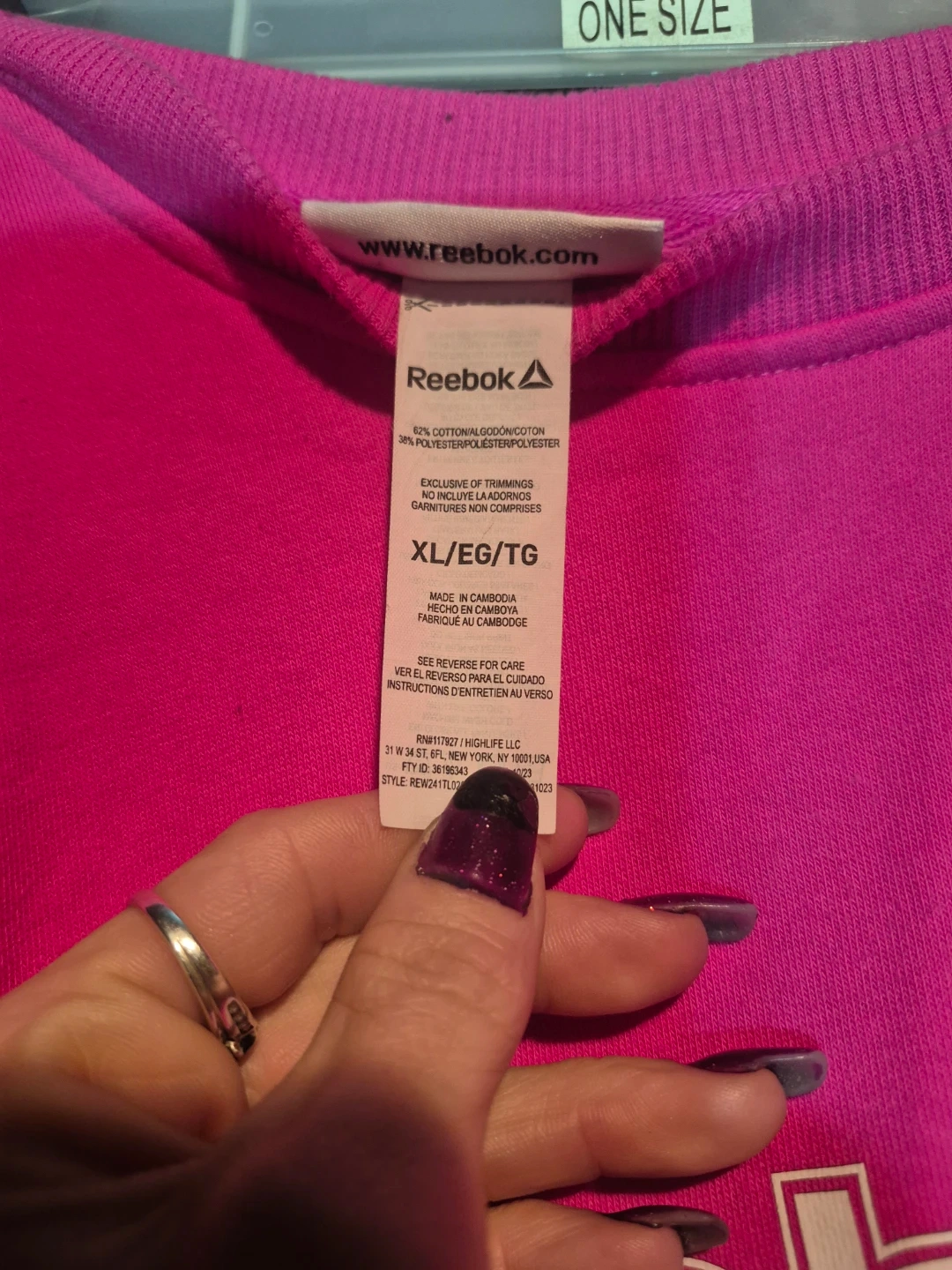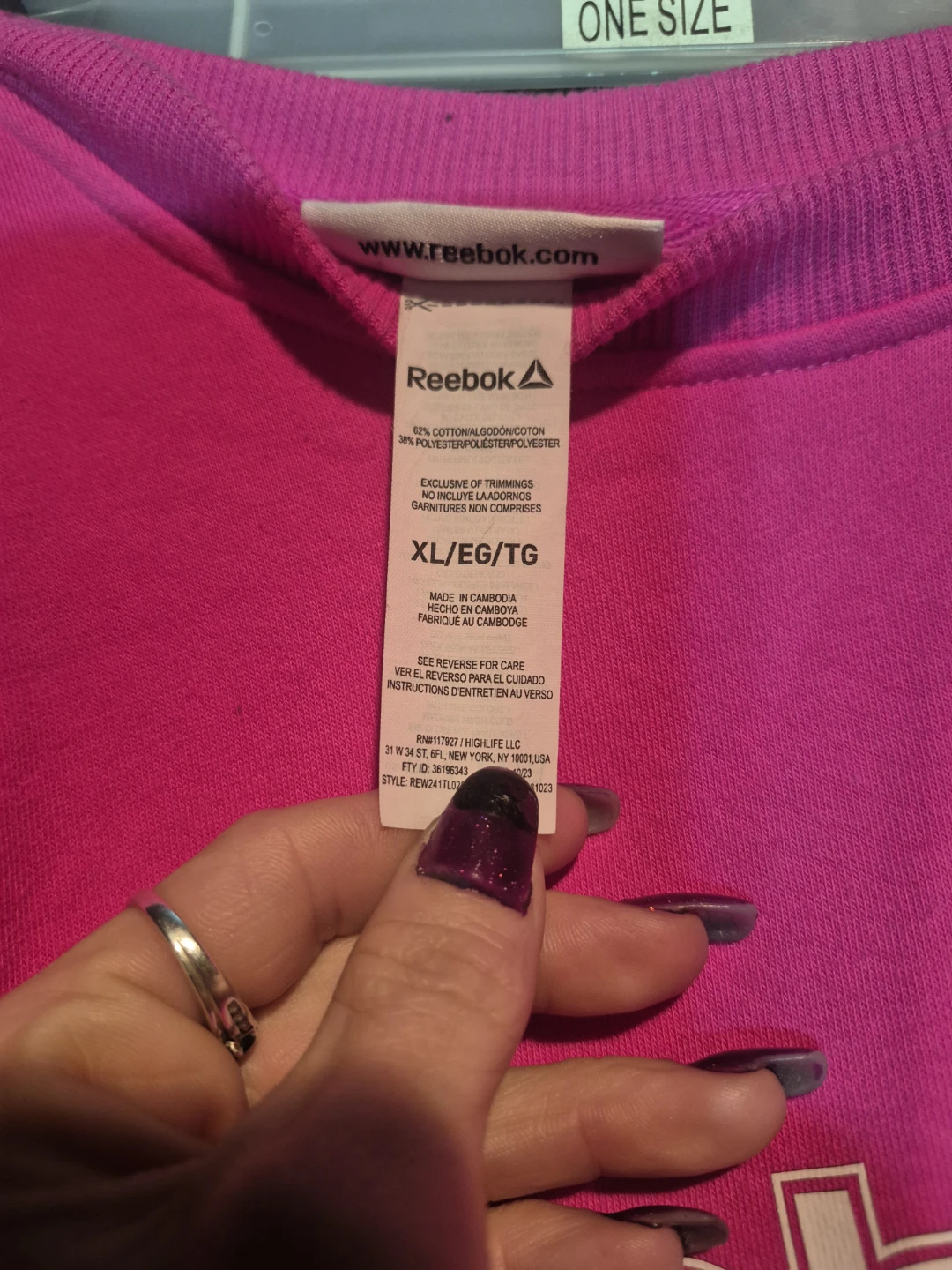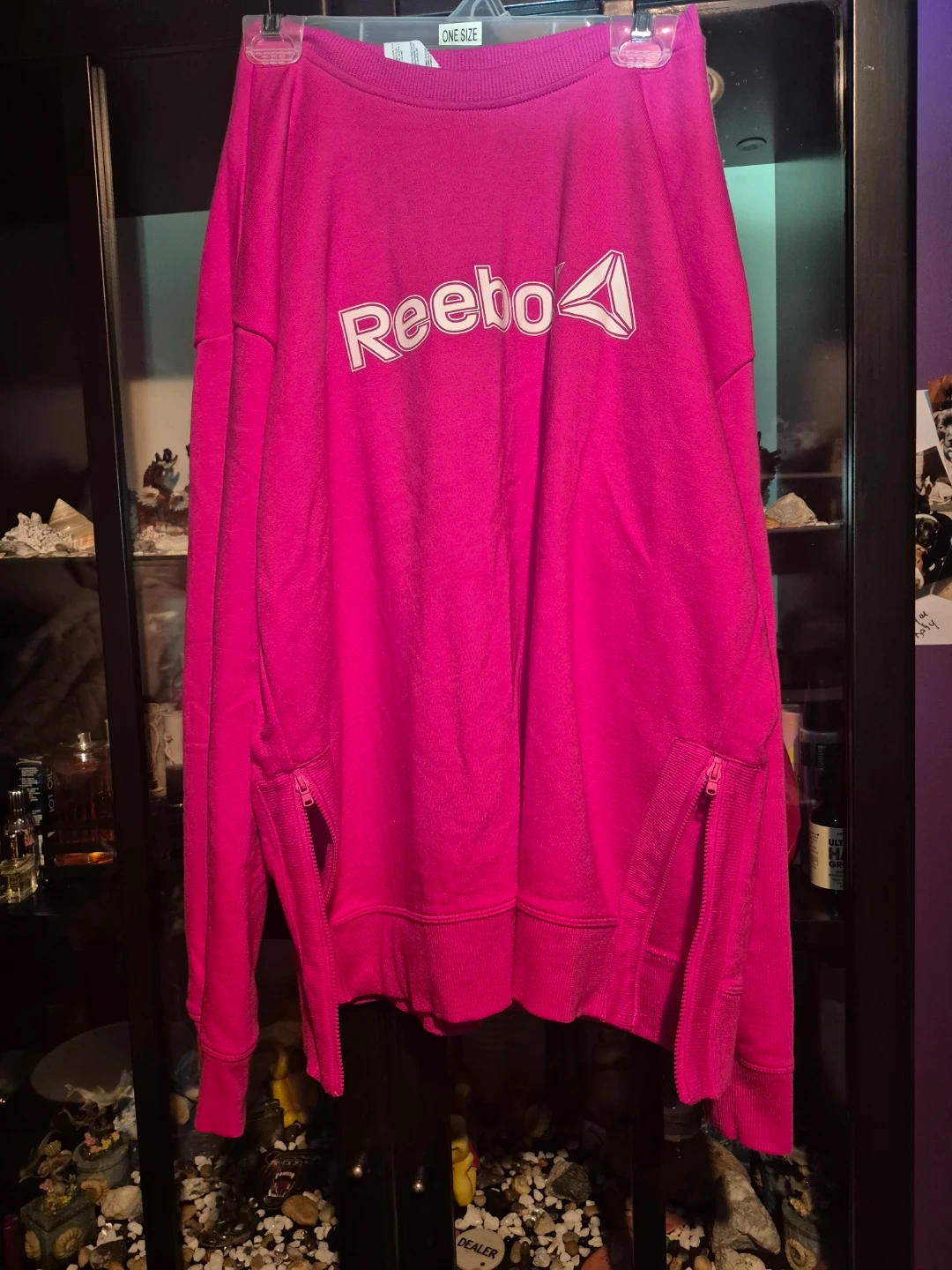 Cozy Reebok sweatshirt in a vibrant pink! It's a size XL/EG/TG and made of 62% cotton and 38% polyester. Perfect for staying comfy and stylish!
