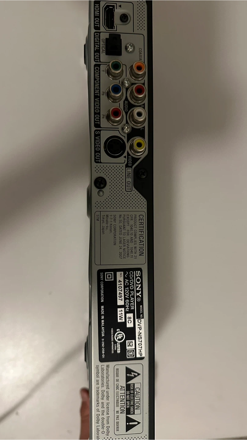 Selling a used Sony DVP-NS707HP CD/DVD player. It comes with its original remote control. It supports HDMI output.