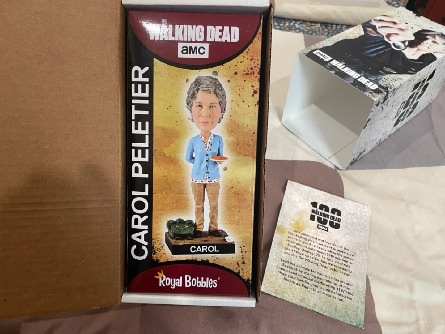 Selling a The Walking Dead Carol bobblehead by Royal Bobbles! It comes with its original box and packaging. This bobblehead commemorates the 100th episode of The Walking Dead.
