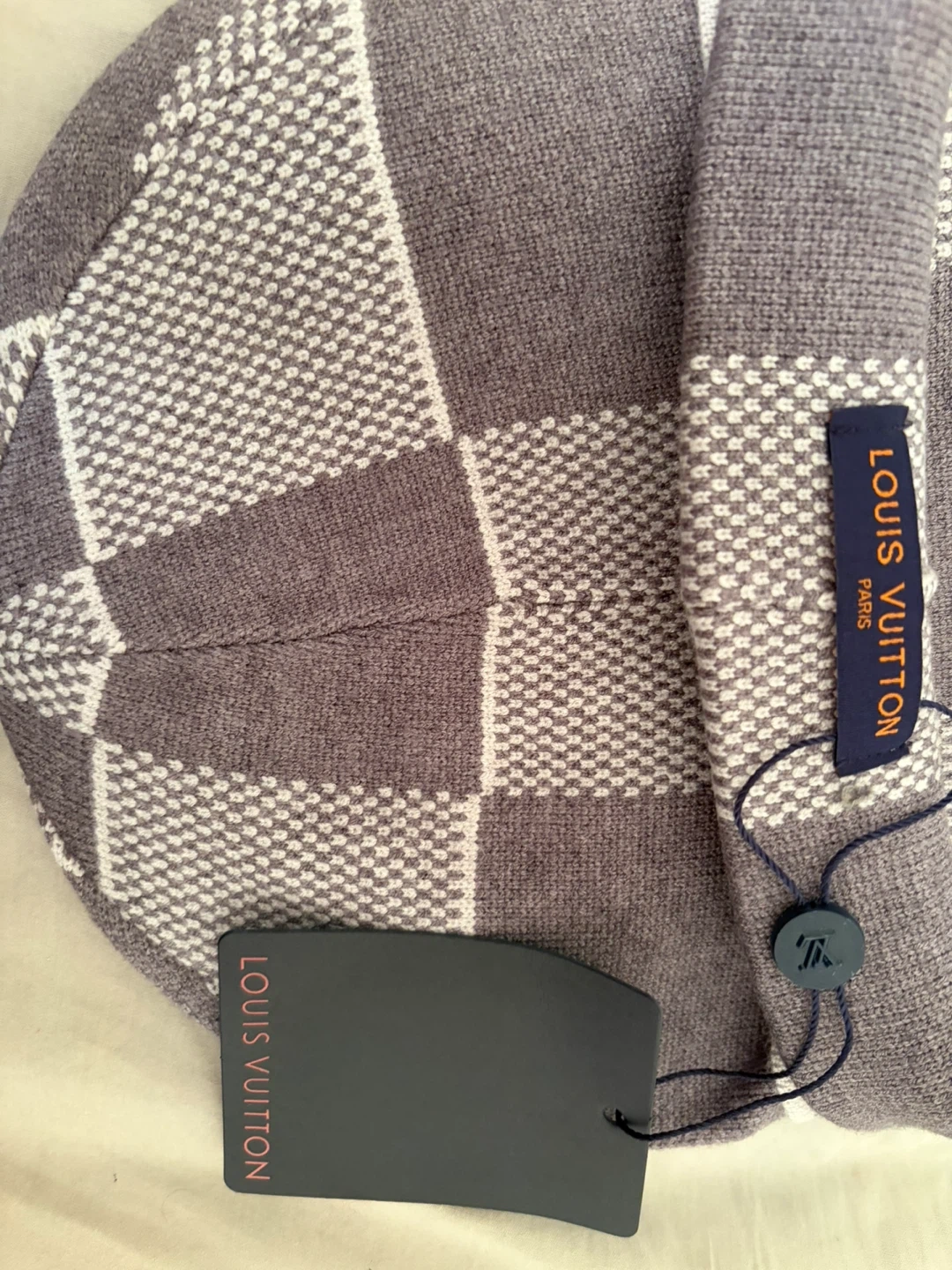 Selling a brand new Louis Vuitton Damier beanie hat with tags still attached! It comes with the original packaging. Stylish and warm, perfect for the Canadian winter