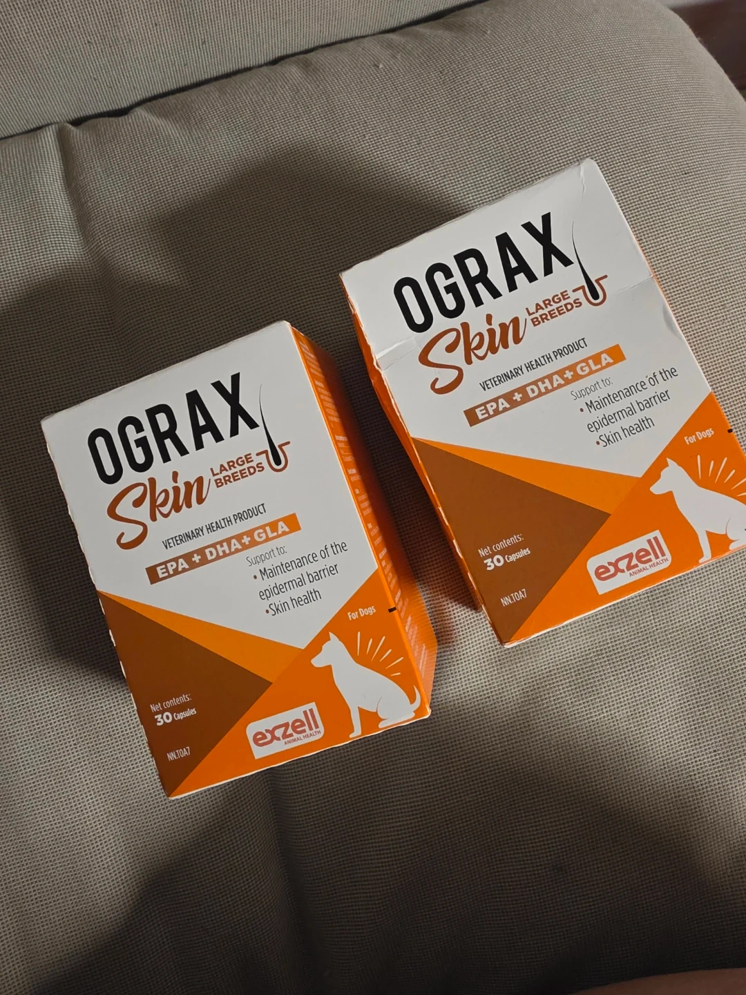 I have 2 new boxes of OGRAX Skin Large Breed dog supplement for sale. It supports the maintenance of the epidermal barrier and skin health in large breed dogs of any age. Each box contains 30 capsules. Expiry date is 2026 April 04.