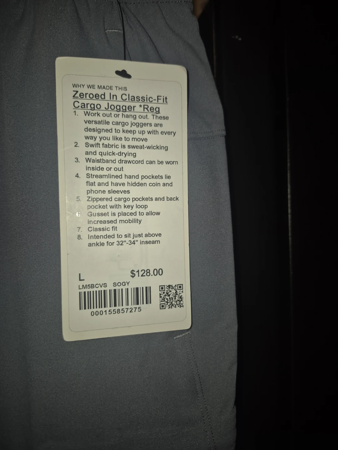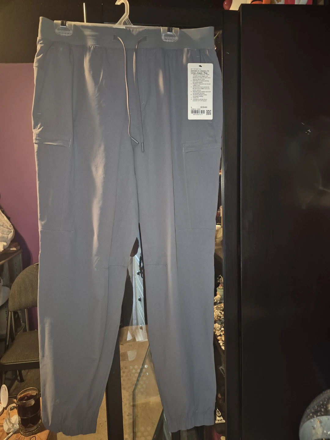 Selling a pair of Lululemon Zeroed In Cargo Joggers in size Large. These joggers are designed for working out or hanging out, made with sweat-wicking and quick-drying Swift fabric. The waistband drawcord can be worn inside or out, and they feature zippered cargo pockets and a back pocket with a key loop. Originally bought for $128! Also have size small and xsmall plus xxxlarge