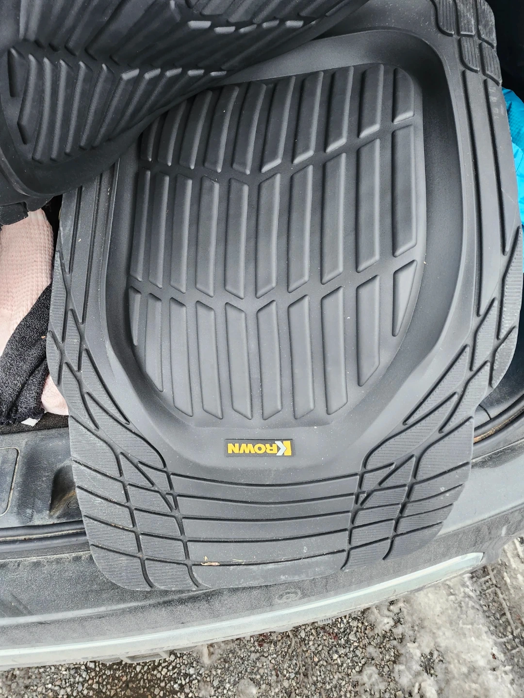 Selling a 3 piece set of black car floor mats from Krown. They are new, never been used and ready to protect your car's interior from the elements