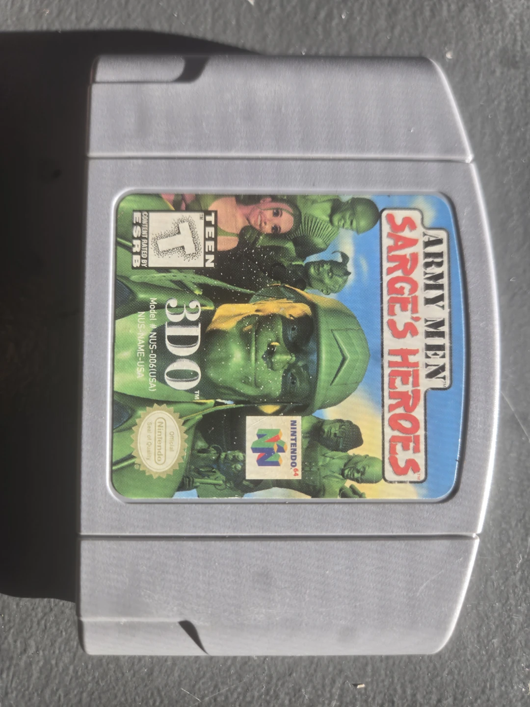 Selling Army Men: Sarge's Heroes for the Nintendo 64! This game is rated T for Teen by the ESRB. Model number is NUS-006 (USA) / NUS-NAGE-USA. A fun addition to your N64 collection!