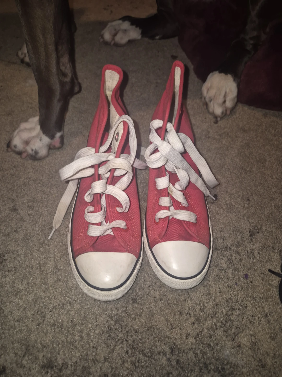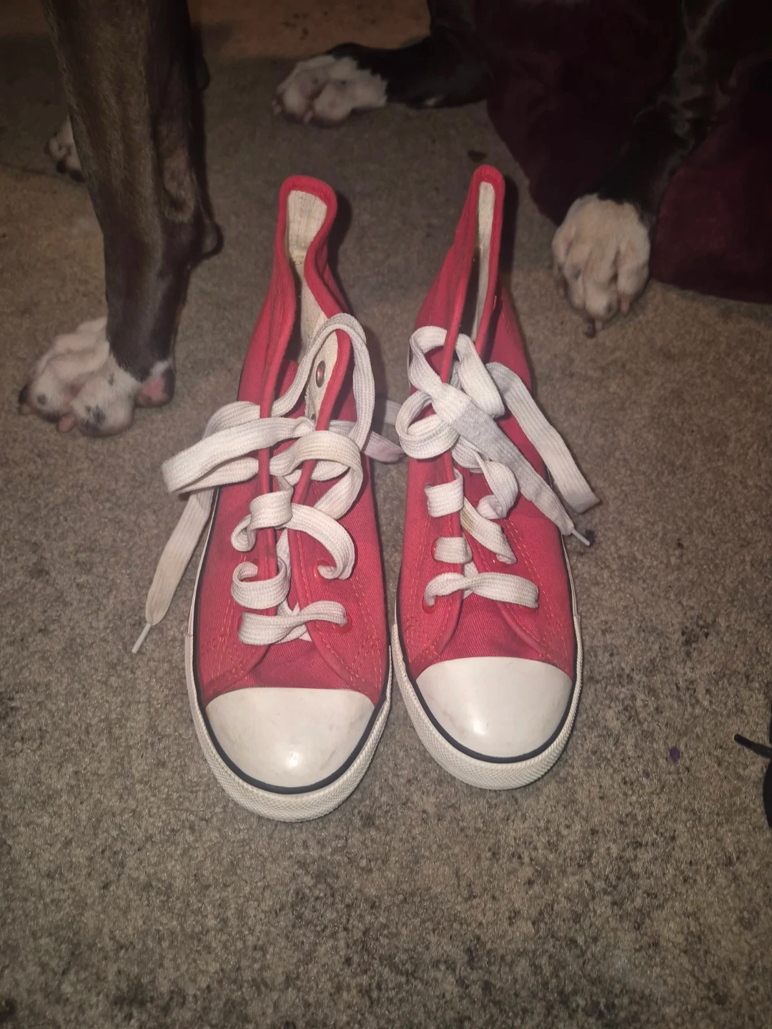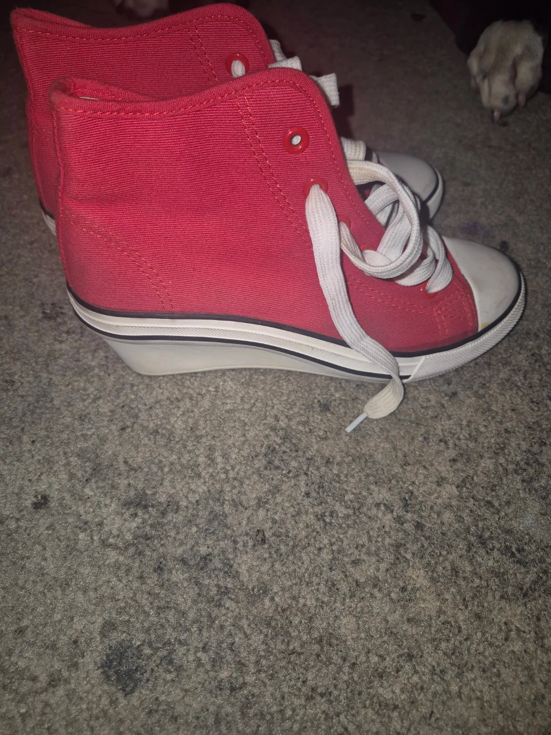 Selling a pair of red high top wedge sneakers from B.B.G. They're a fun and stylish way to add a bit of height while keeping things casual. Perfect for adding a pop of colour to your outfit!