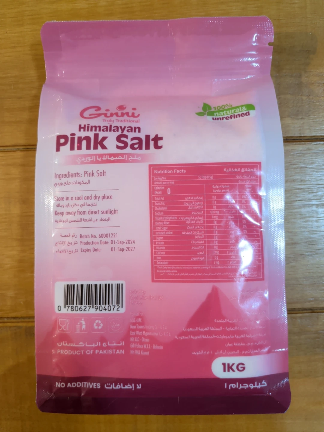 Selling a 1 KG bag of Ginni Truly Traditional Himalayan Pink Salt! It's 100% natural and unrefined, perfect for adding a touch of flavour to your dishes. Enjoy!
