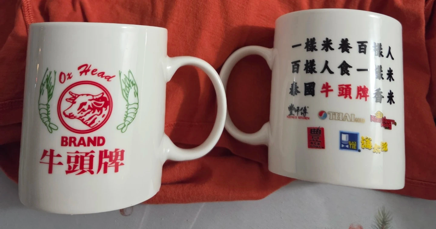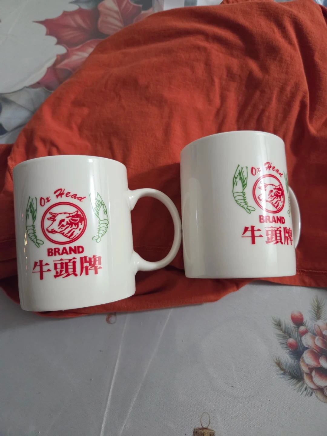 FREEa set of two Ox Head Brand mugs! These mugs are in great condition and feature the classic Ox Head logo. Perfect for enjoying your morning coffee or tea!