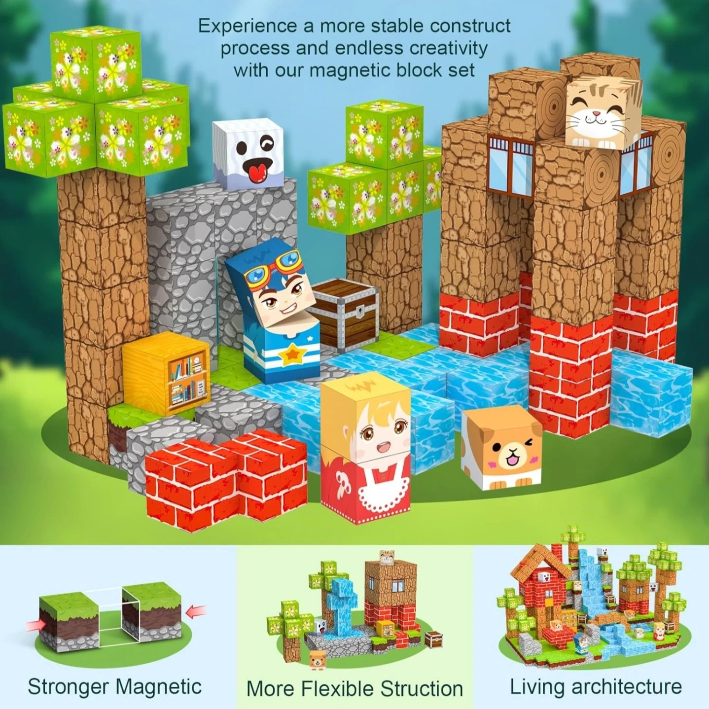Magnetic Building Blocks - Minecraft Style - Ages 3+