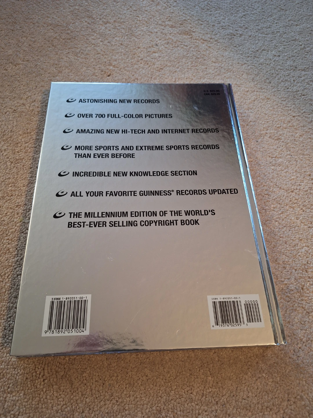 Selling a copy of Guinness World Records 2000 Millennium Edition. It's full of astonishing new records and over 700 full-colour pictures. There are also amazing new hi-tech and internet records, along with more sports and extreme sports records than ever before! This edition also has an incredible new knowledge section and all your favourite Guinness records updated. Original price $29.95 Canadian. A real bargain at $3!