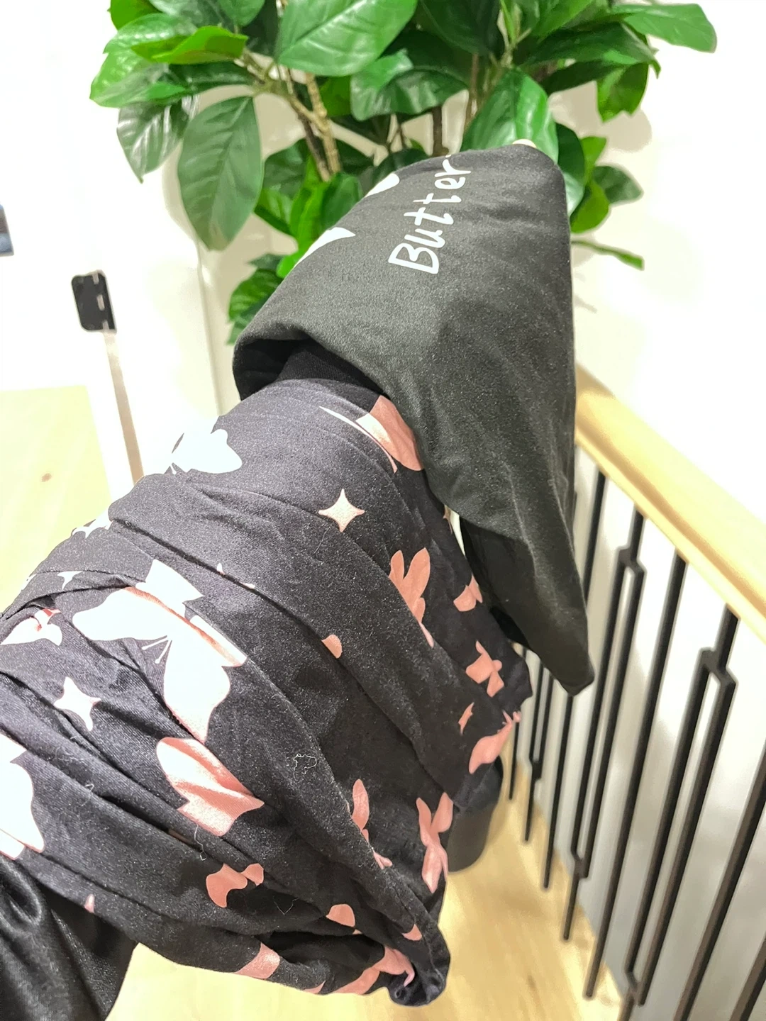 I'm selling a sleep wear with the word "Butterfly love on it. It's black and has a pink butterfly pattern. It's in great condition and new. Size is small. This is free with a minimum purchase of 7$ of one or more of my other listings!