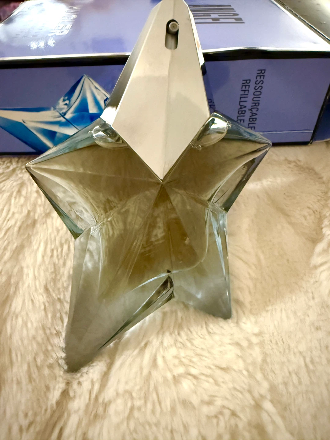 Selling this brand new Angel Eau de Parfum. It's a refillable star, and the bottle contains 25ml / 0.8 fl oz of the fragrance. Comes with the original box!