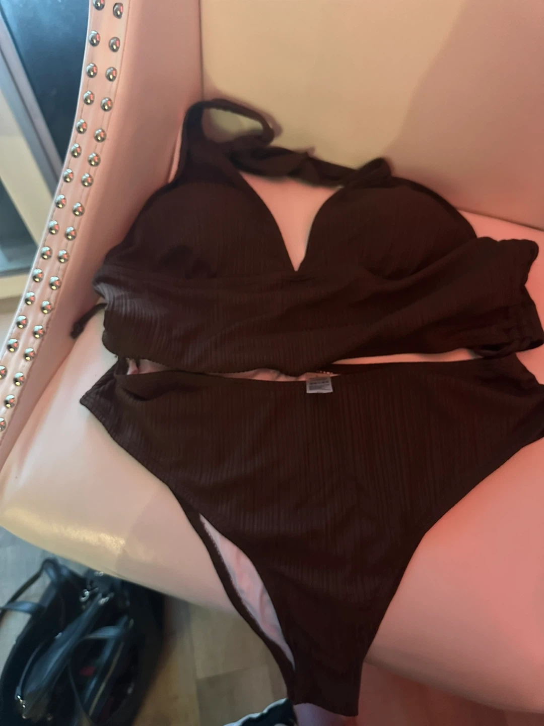 Selling a cute brown two-piece swimsuit! It appears to be in good condition and ready for some fun in the sun!