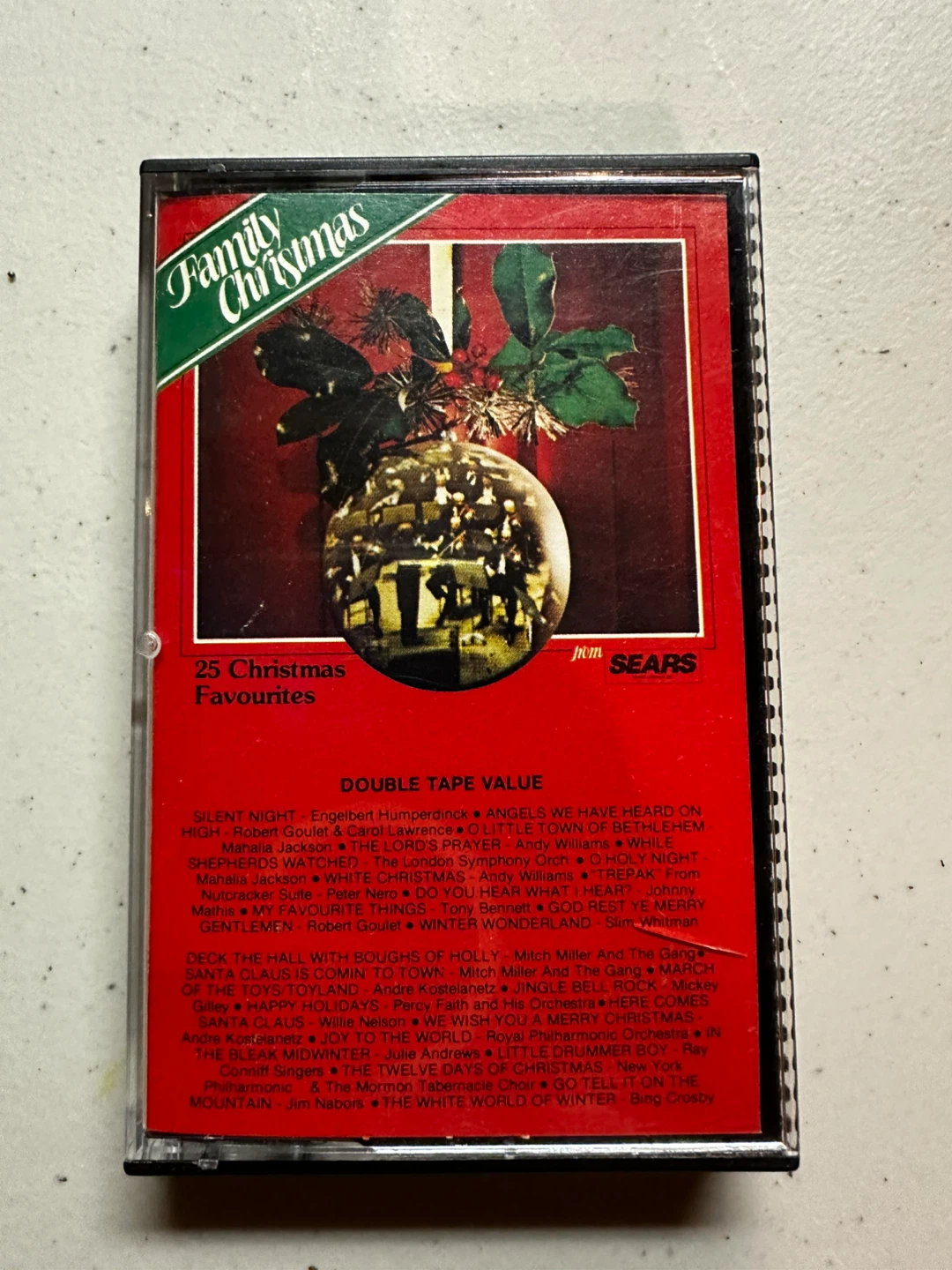 Selling a vintage Sears "Family Christmas" cassette tape. It includes 25 Christmas favourites. A great addition to any collection!
