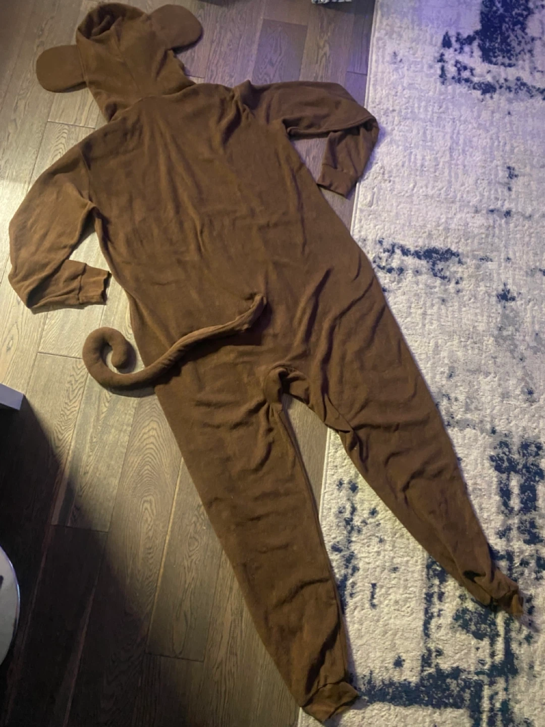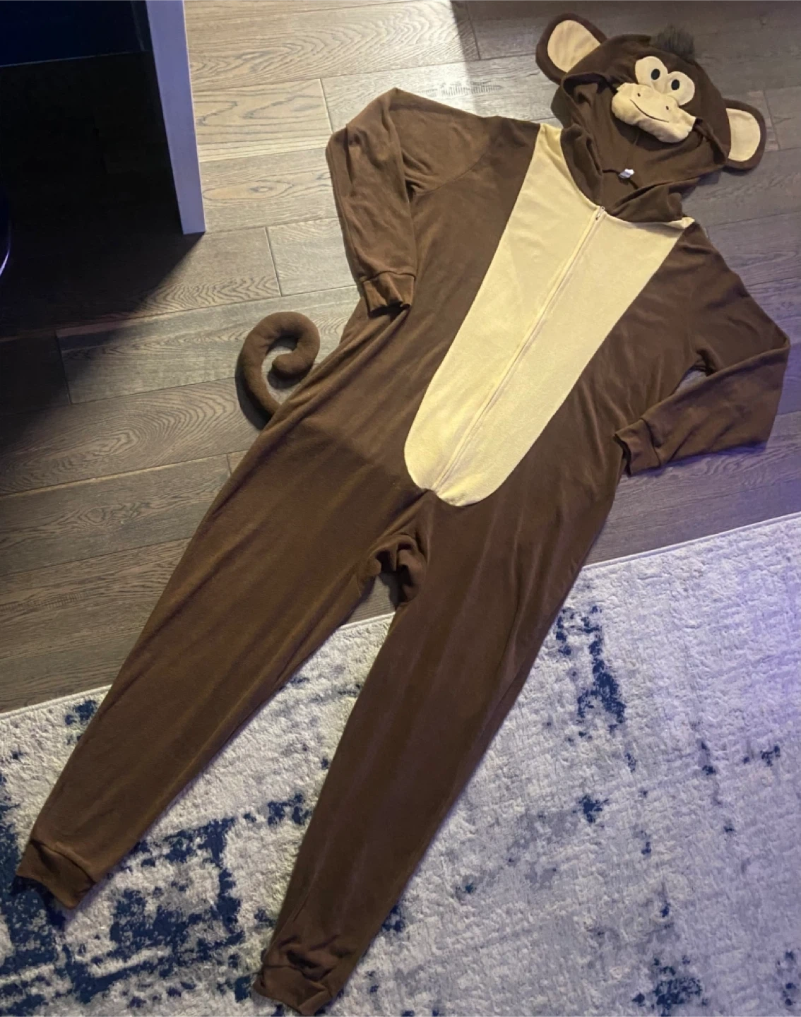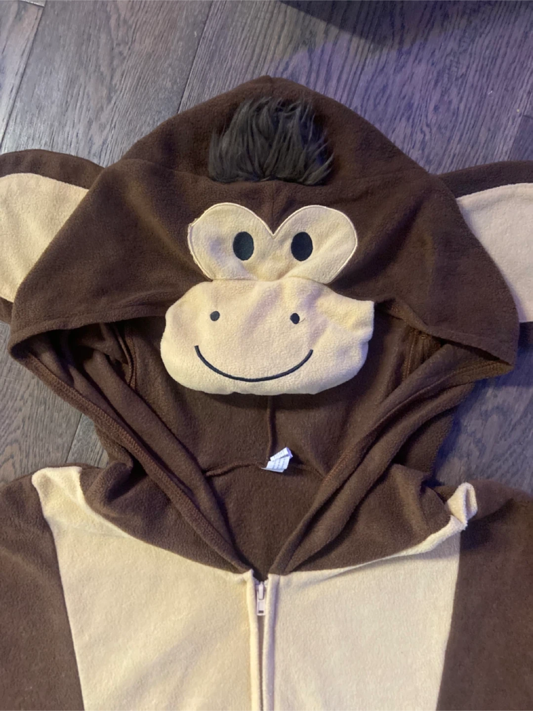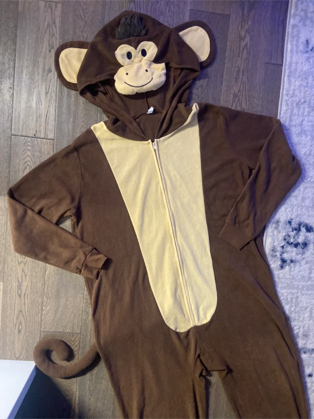Adult cozy fleece monkey onesie! It's brown with a cream-coloured front panel and a cute monkey face on the hood with tuft of hair and also long curling tail. Perfect for lounging around the house or for a fun costume party! Like new and smk-free. Size small/medium. Pick up north end St Catharines