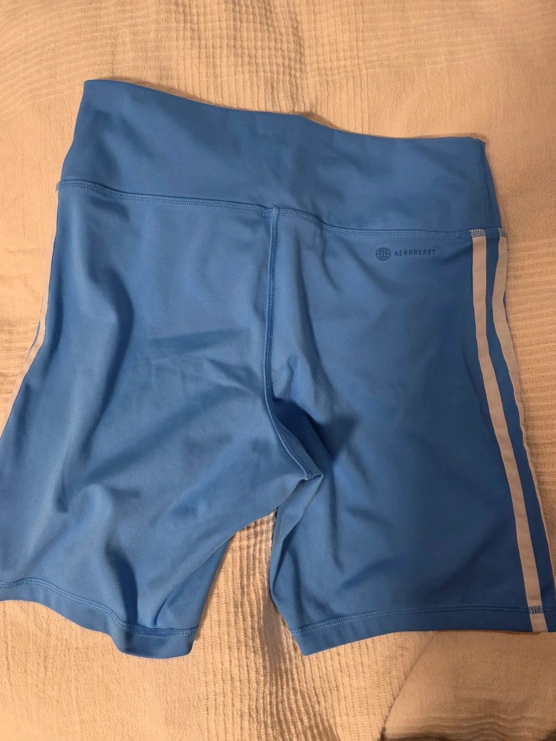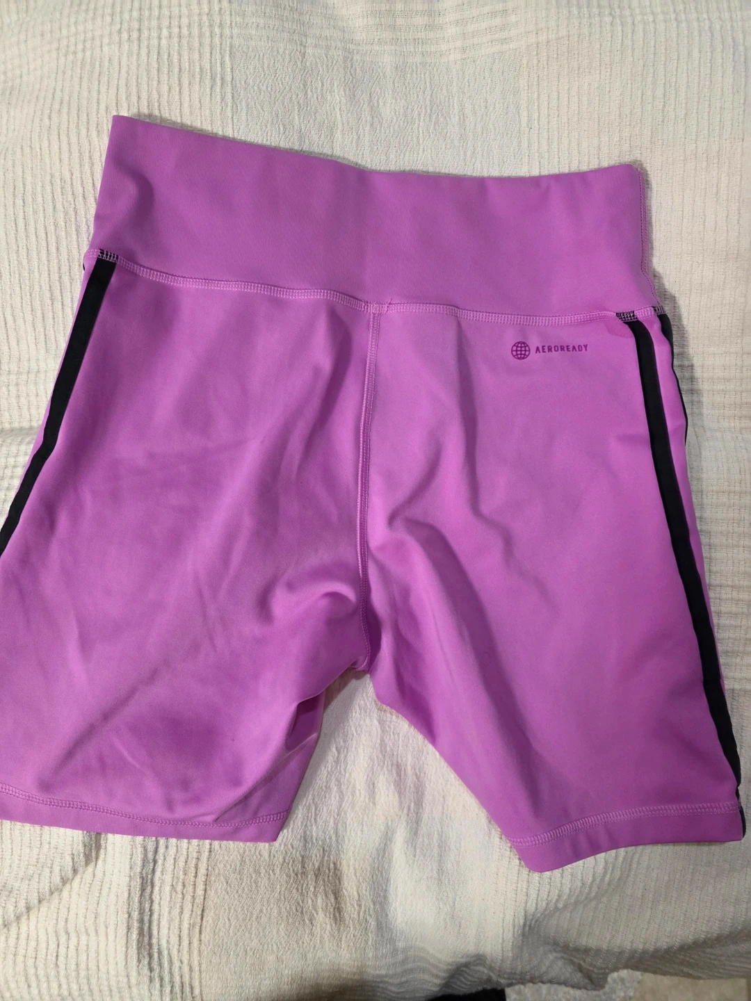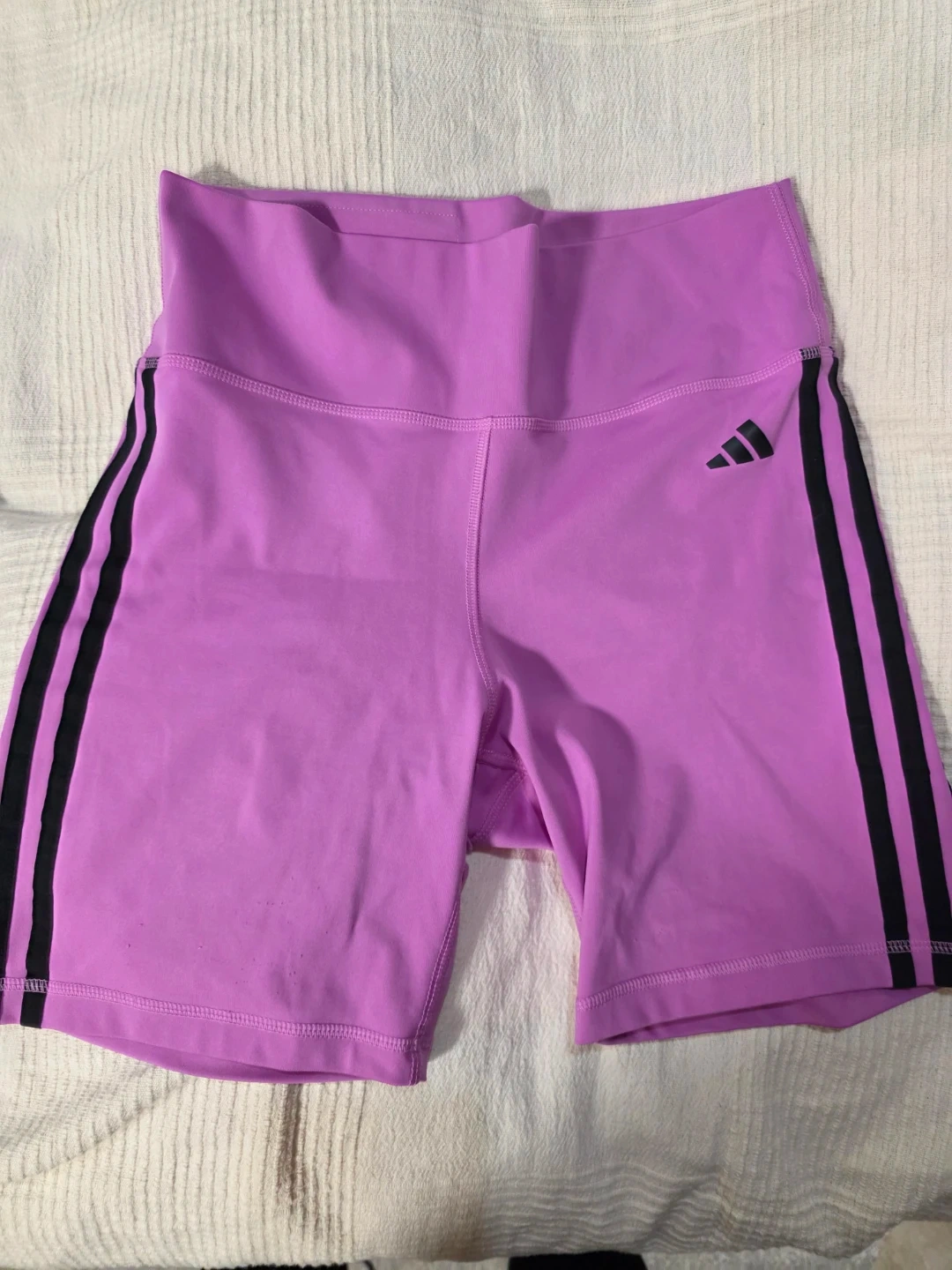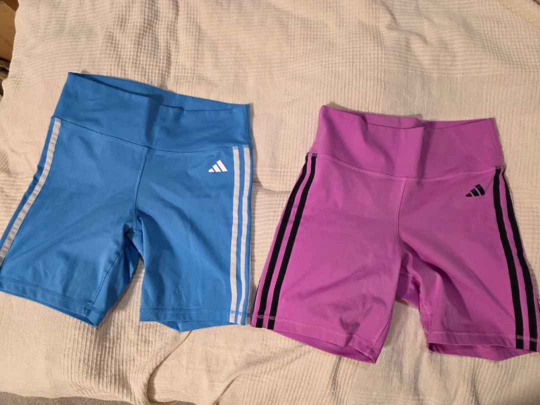 Selling a pair of Adidas women's bike shorts in size medium! One pair is light blue and the other is a pretty purple colour. Both have the classic Adidas stripes down the side and are in great condition. Perfect for workouts or casual wear!