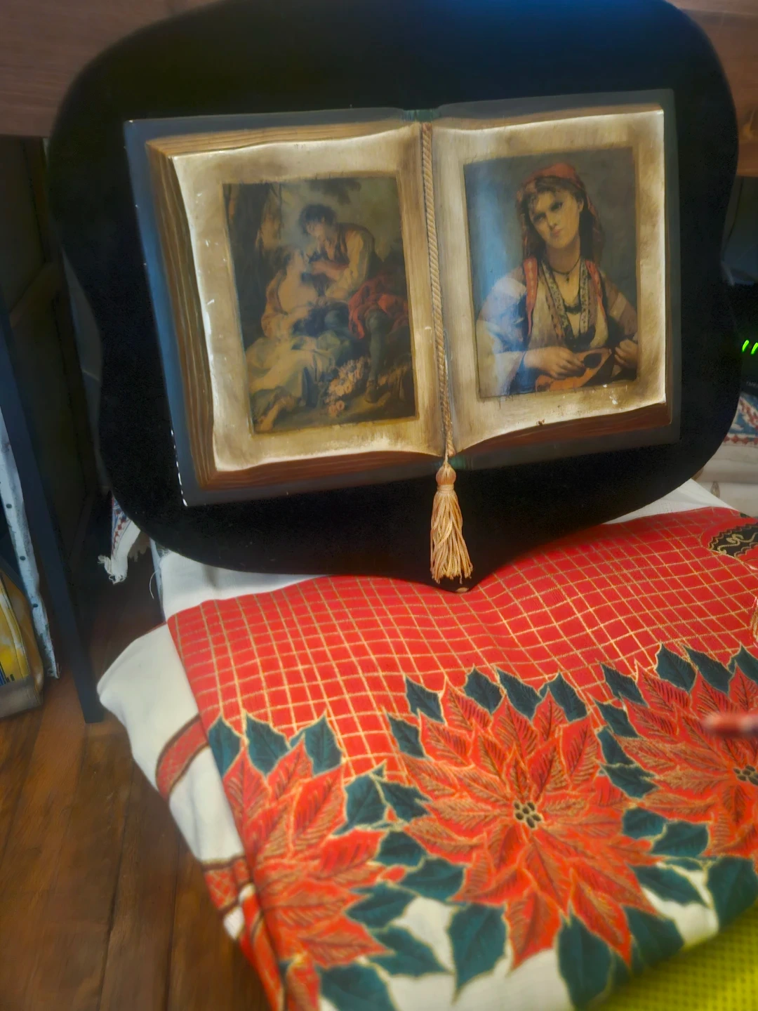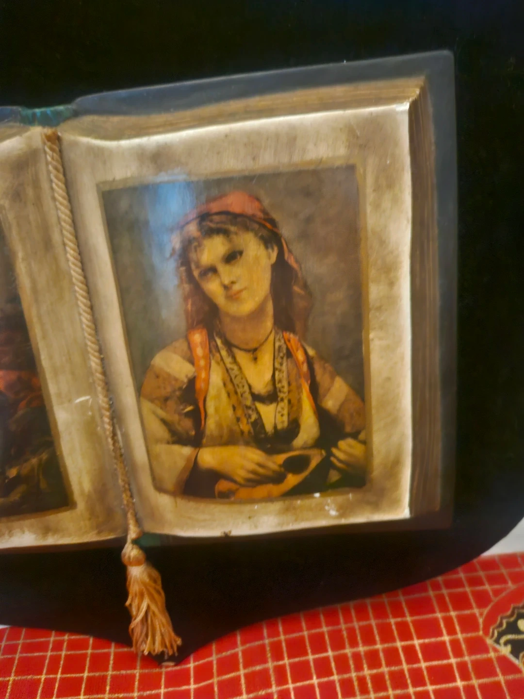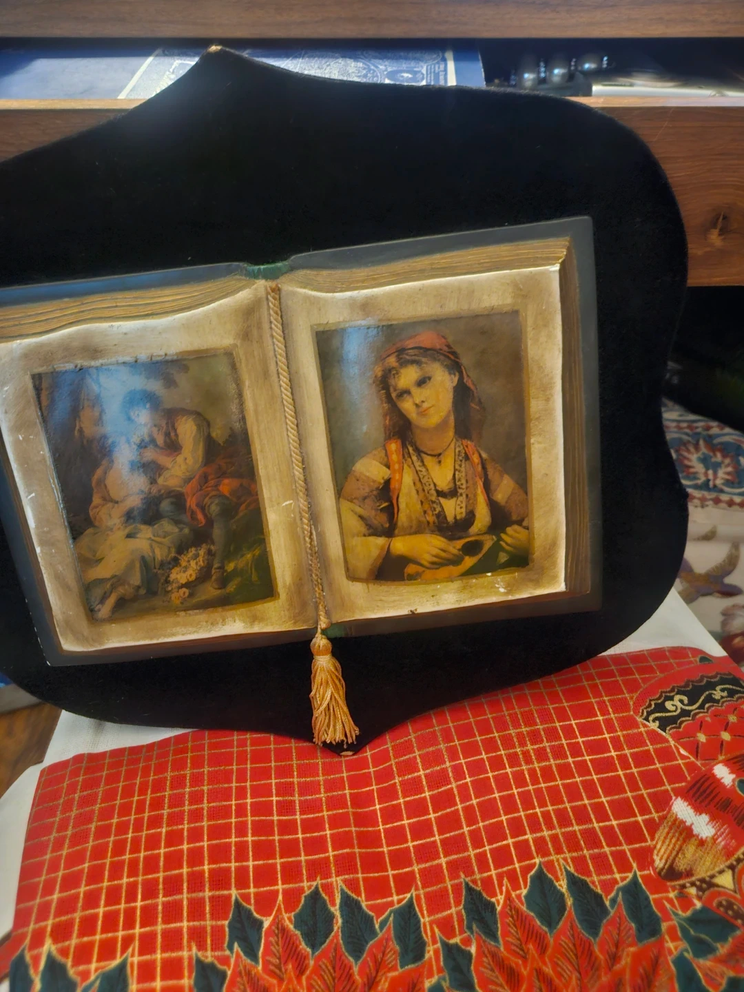 VTG 70sCeramic Book hang Velvet Frame with Art Prints Italy