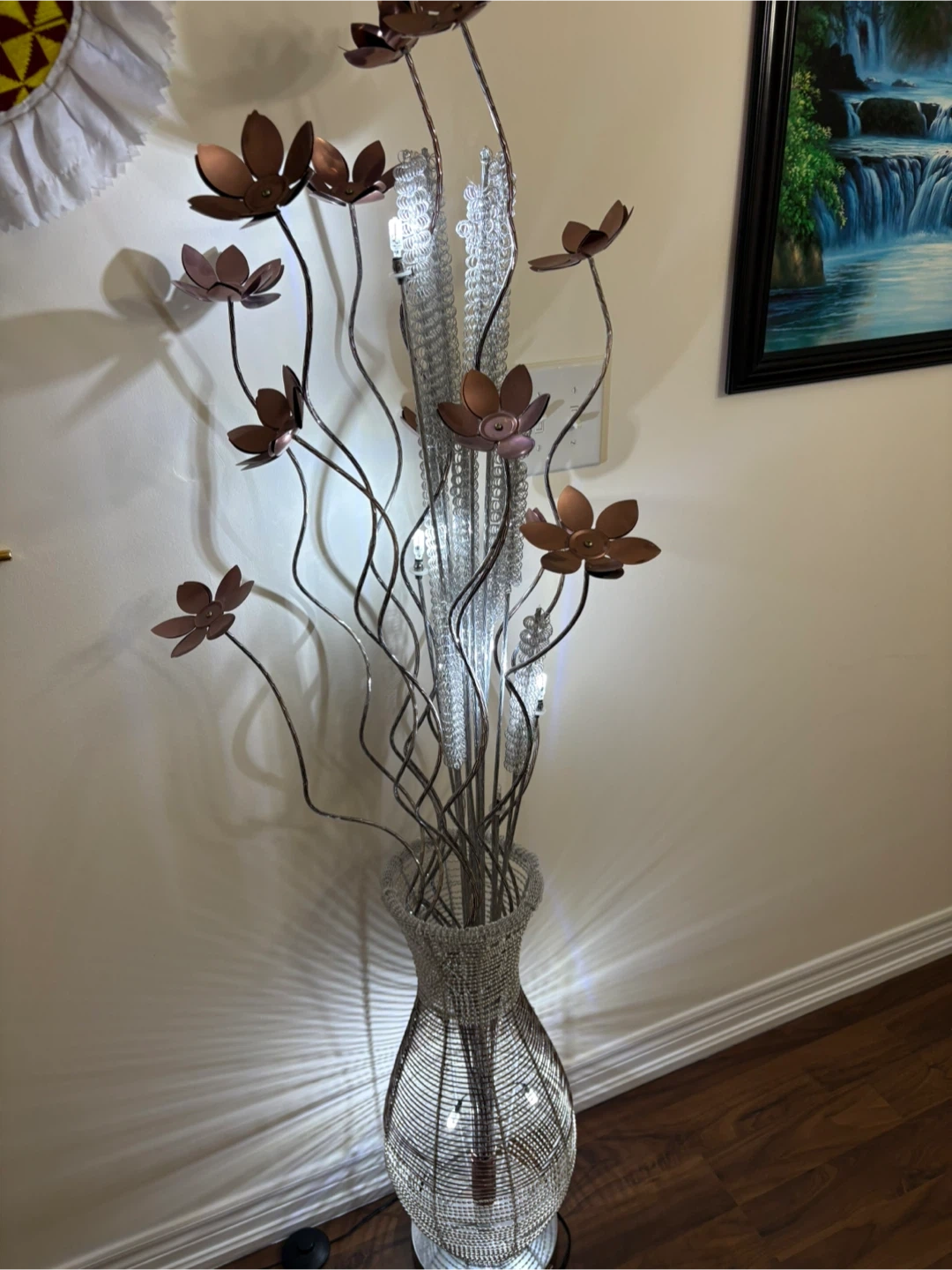Selling a unique floral floor lamp! It features a vase-shaped base with decorative flowers and lights. It would look great in any room!
