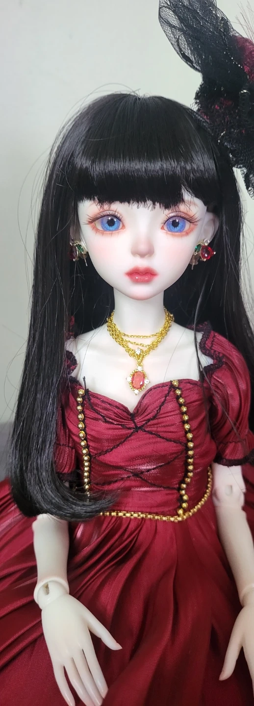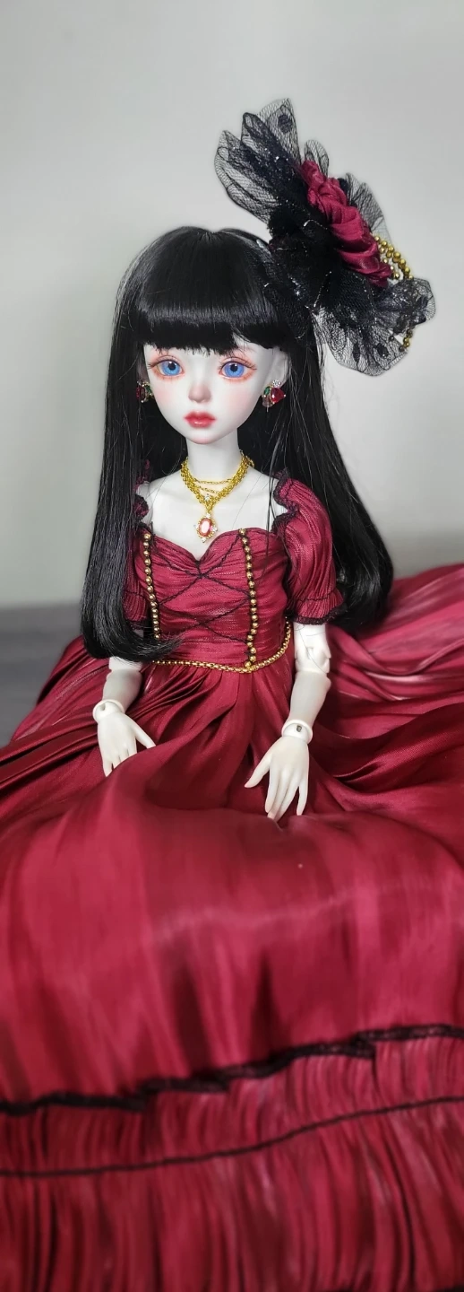 I am selling my beautiful Celia 1/4 (18inch) BJD doll with her gorgeous dress set and all accessories shown in the pictures. Celia comes with custom shimmering glam make up and body blushing done. She is a new purchase. I have decided to buy a different doll hence selling this one. Please message me for any queries. BTW, I have different wigs if you want to switch from the black one, let me know.