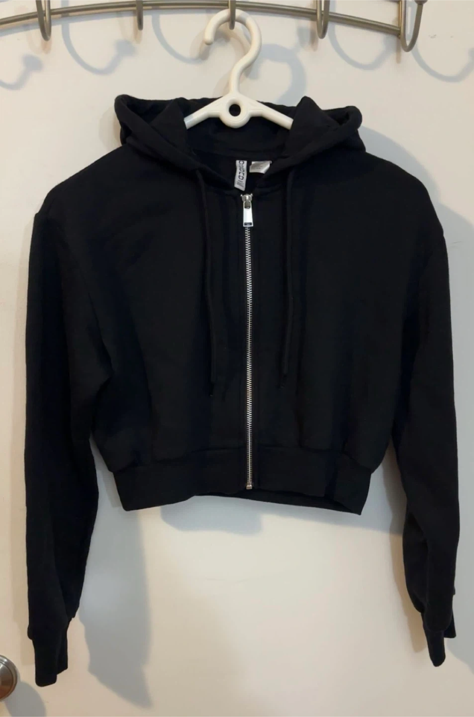 H&M Black Cropped Zip-Up Hoodie - Size M. $2 cash. Porch pick up Kennedy and Eglinton.