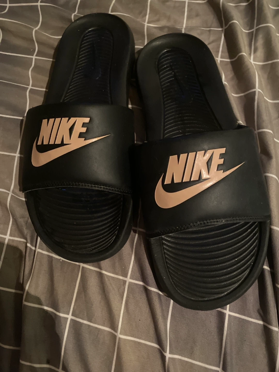 Selling a pair of Nike slides in great condition! They are a US size 11 and feature the classic Nike logo on the strap. Perfect for summer or wearing around the house