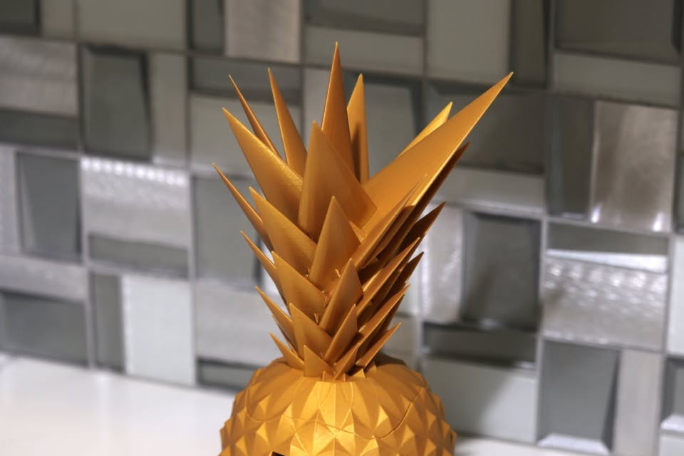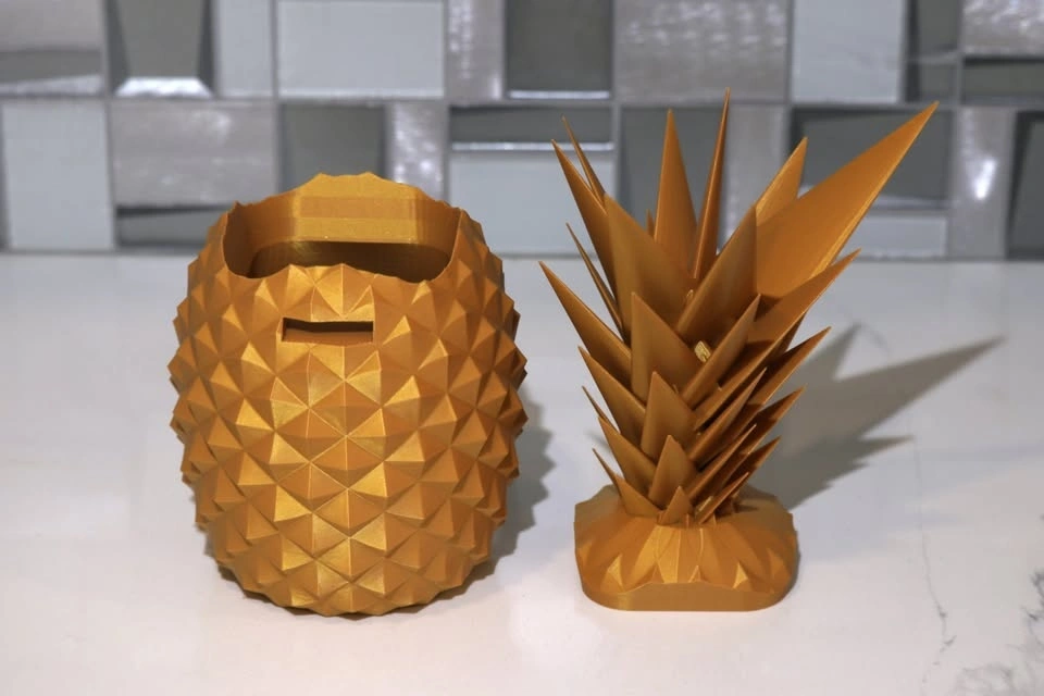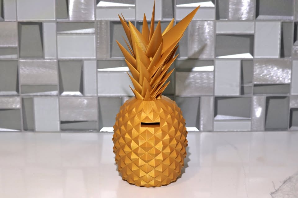 Gold pineapple piggy bank made of PLA.