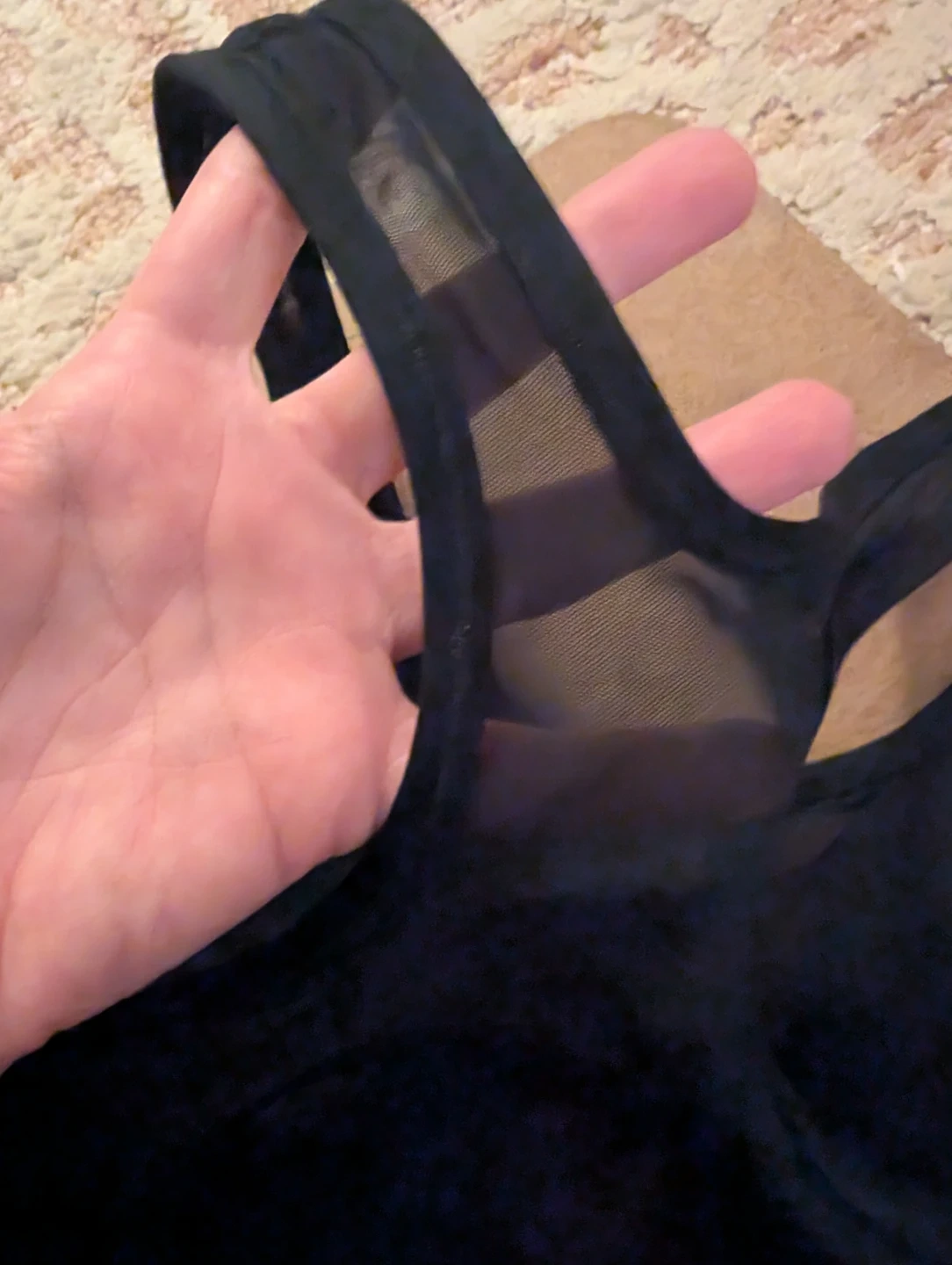 Black, partially see-through. I'm guessing it would fit xs-s. Pick up in Windsor Park.