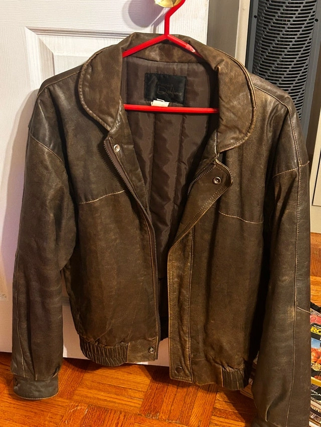 Vintage Mario Delfino leather jacket in good condition, size 40. This rugged yet stylish jacket features a classic bomber design with a comfortable fit, perfect for adding a touch of vintage flair to any outfit. Please note that this is a used item, and its condition reflects its history, adding to its unique character. Pickup in East York. Cash only.