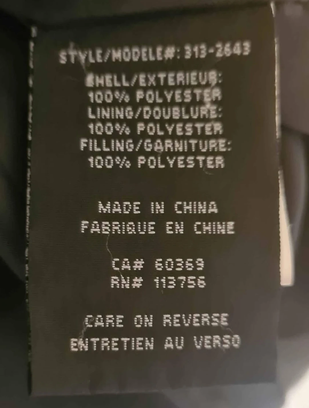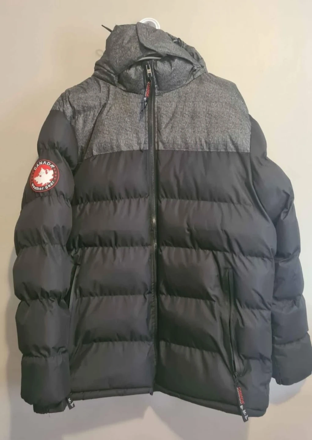 Cozy Canada Weather Gear puffer jacket in size XL. The outer shell, lining, and filling are all 100% polyester! Perfect for staying warm during the colder months
