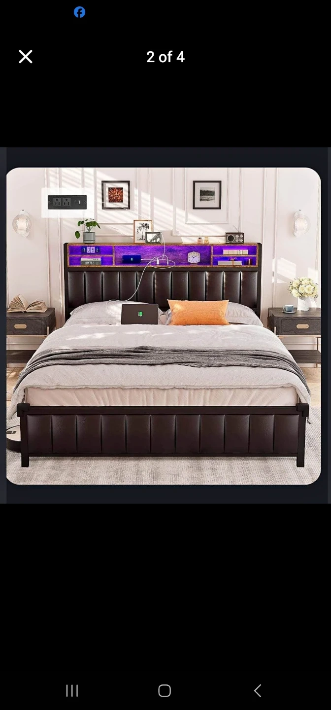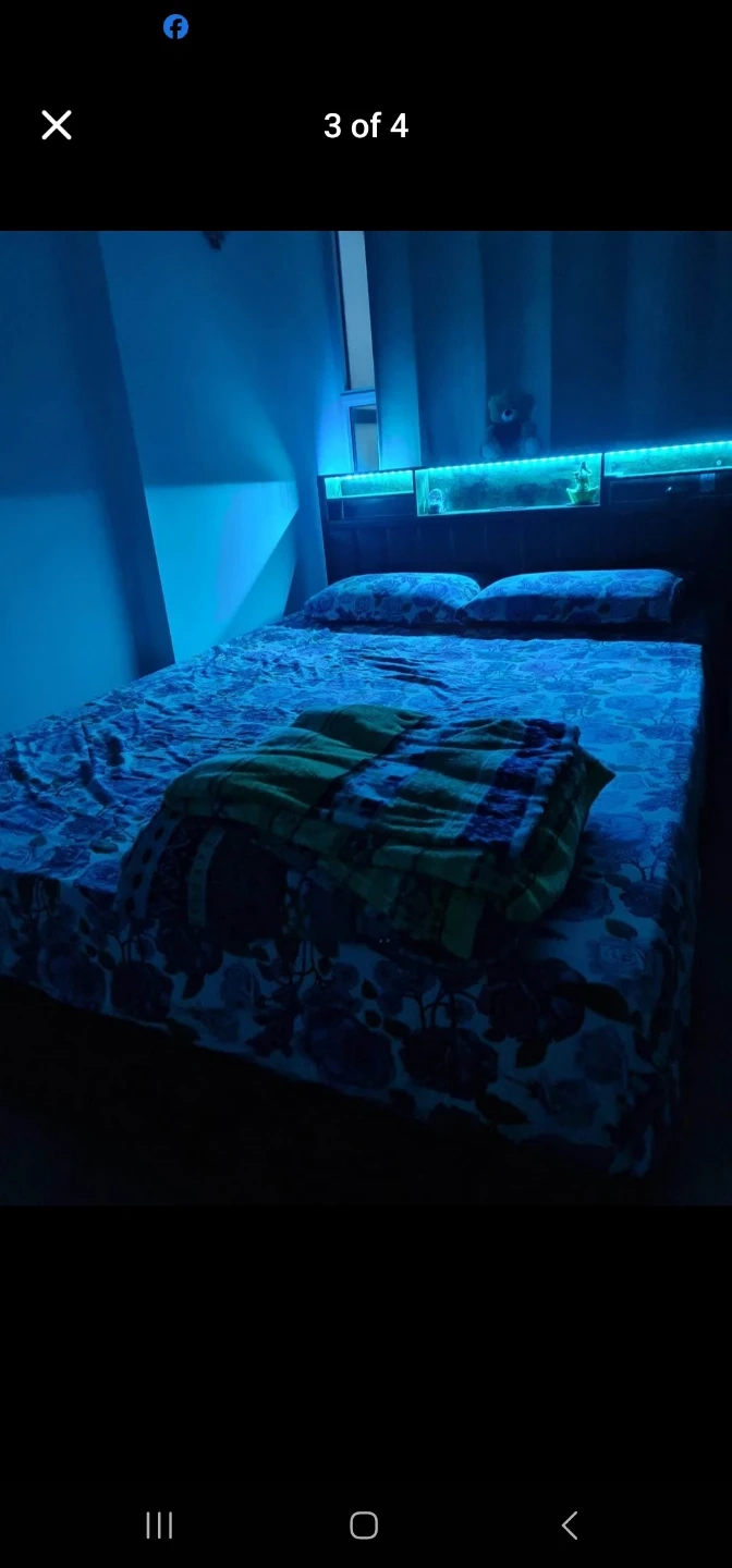 Selling a queen size bed frame and mattress that comes with built-in LED lights in the headboard! It's in great condition and would be a stylish addition to any bedroom. Perfect for creating a cozy and modern atmosphere
