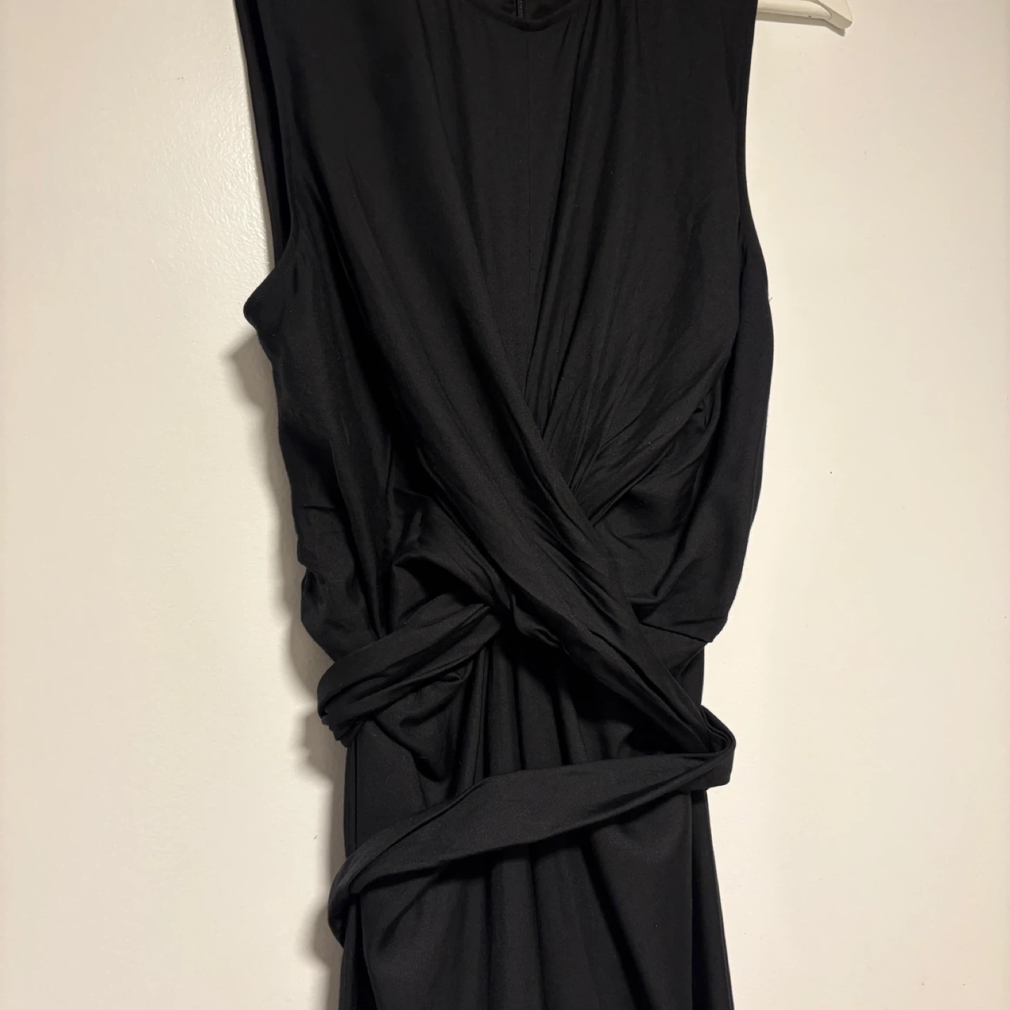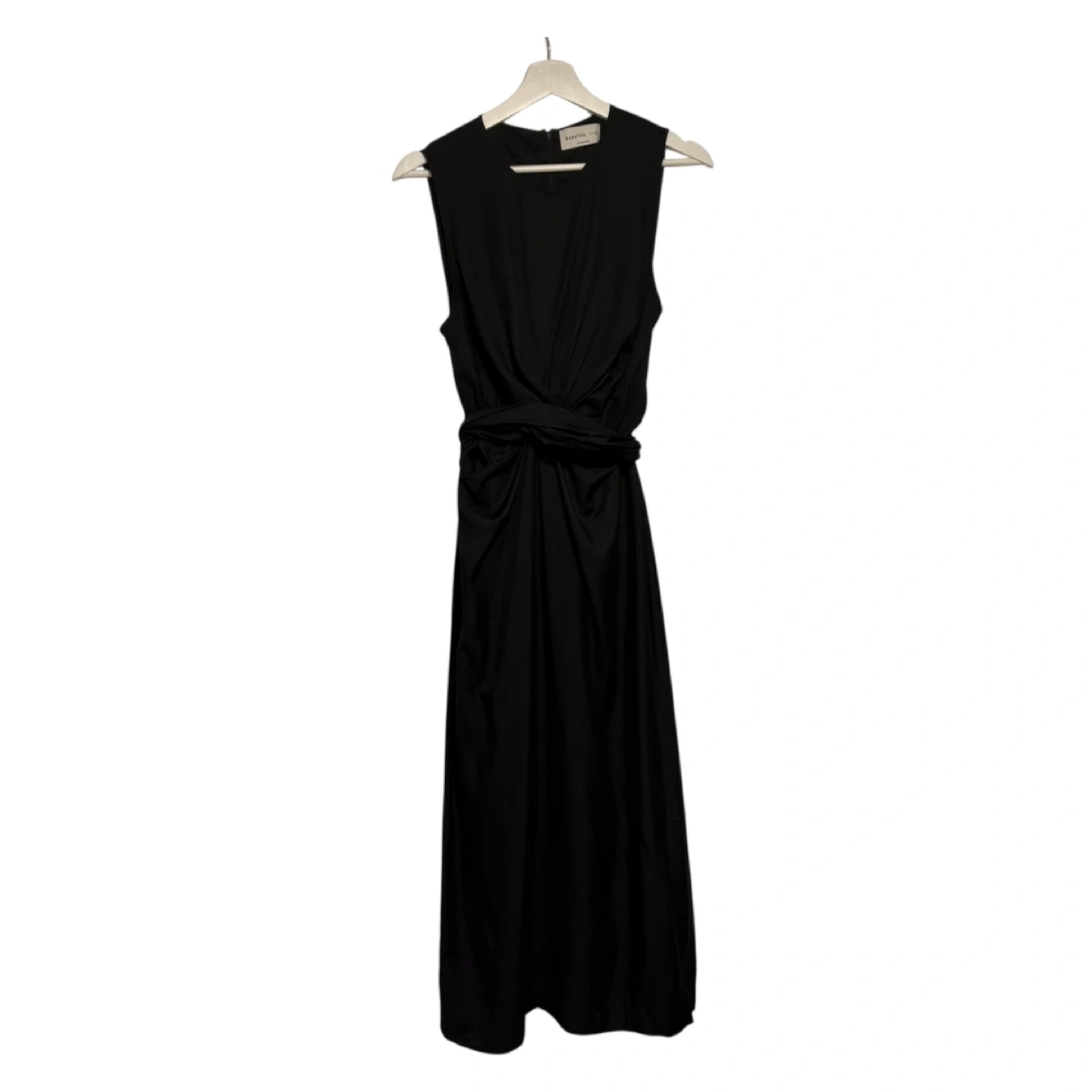 Aritzia Babaton 1-01 Black Marian Waist Tie Rayon Silk Blend Midi Dress Size 8