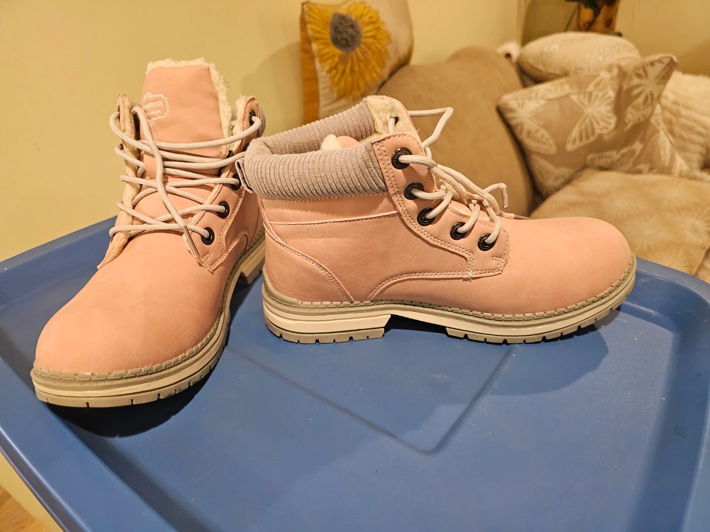 Cute pink winter boots, perfect for keeping your feet warm and stylish! They feature a cozy, soft lining and durable soles for traction. These boots are in like new shape and ready for the winter season!