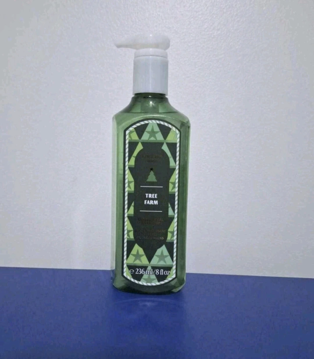 Bath & Body Works hand soap in the Tree Farm scent. It's a festive, woodsy fragrance that's perfect for the holidays! The bottle contains 236 mL / 8 fl oz