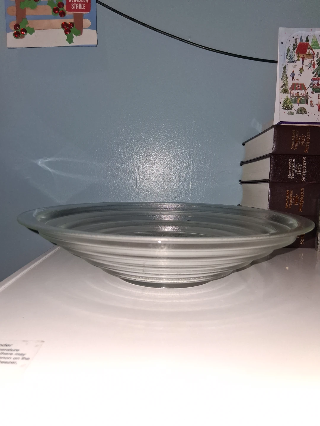 Selling a clear glass serving bowl. It is in great condition and would be perfect for salads or desserts! 11 inches across and just under 3 inches deep.