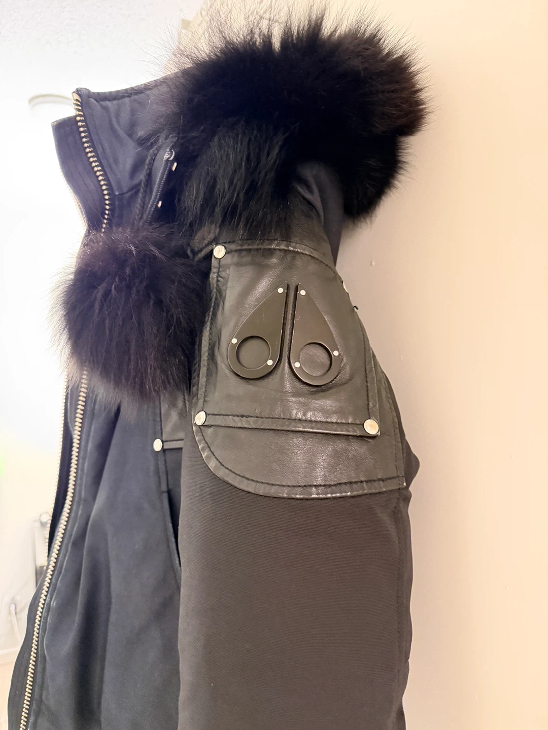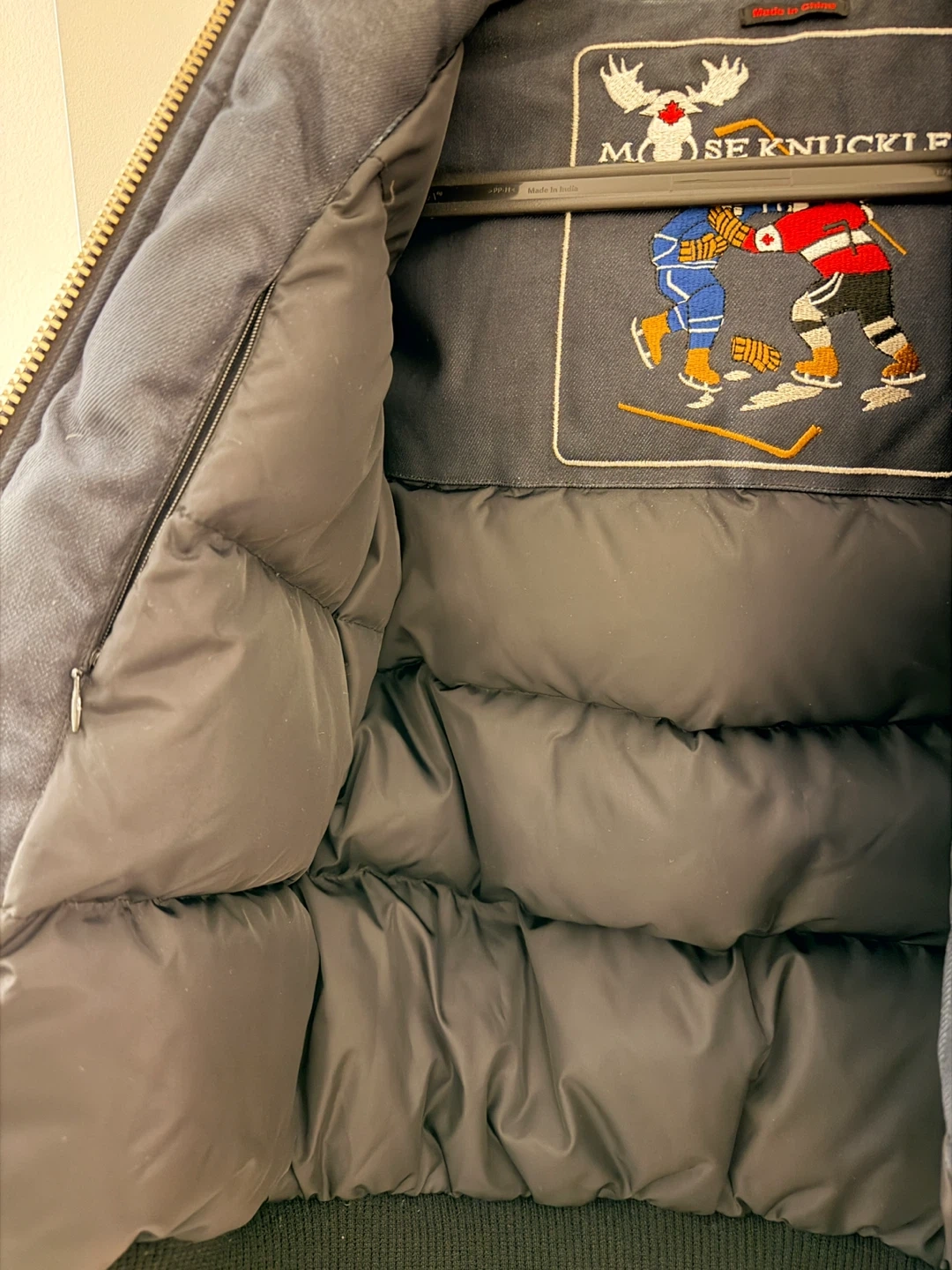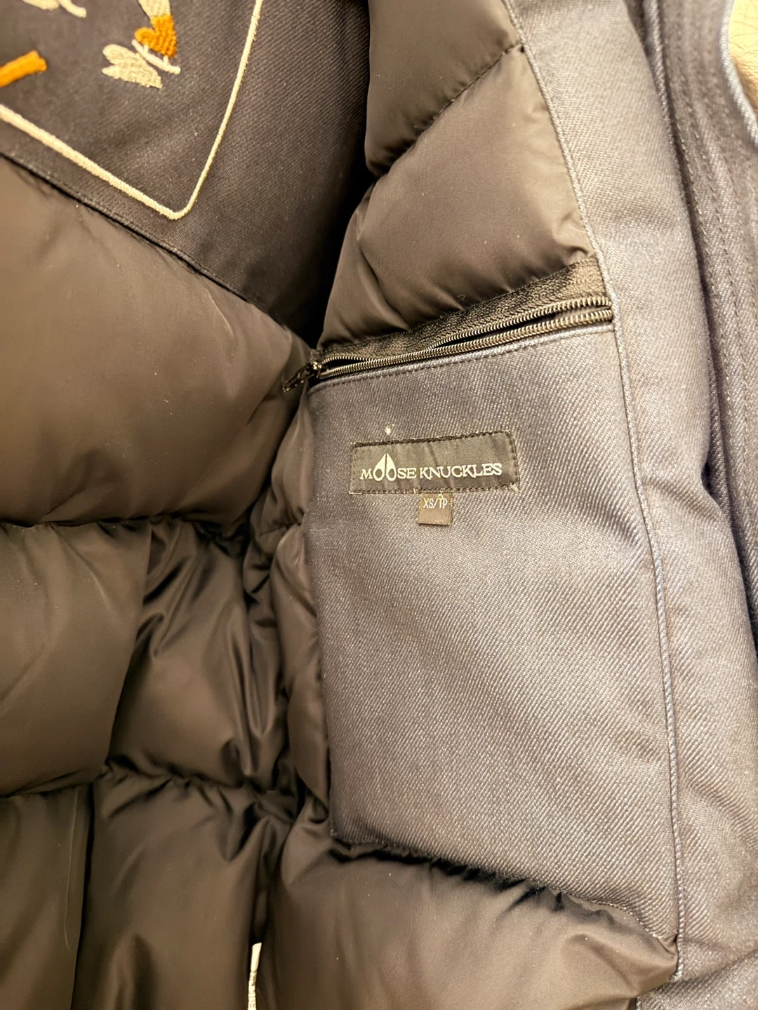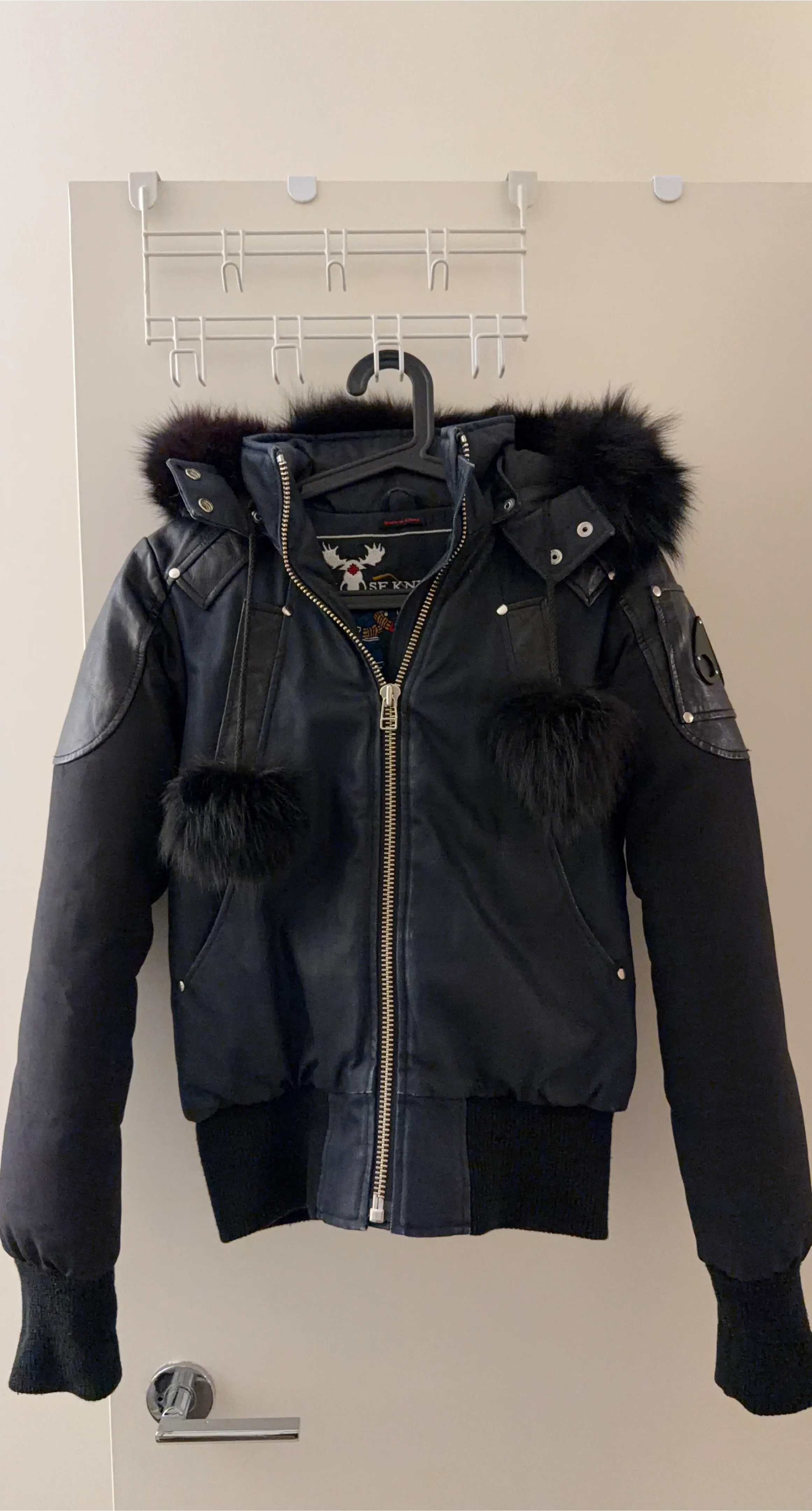 Selling a women Moose Knuckles bomber jacket in size XS, dark blue, close to black. It's a stylish and warm jacket, perfect for the Canadian winter! Extremely warm. Selling only because it doesn’t fit anymore. Buy it and you’ll definitely be getting a bargain.