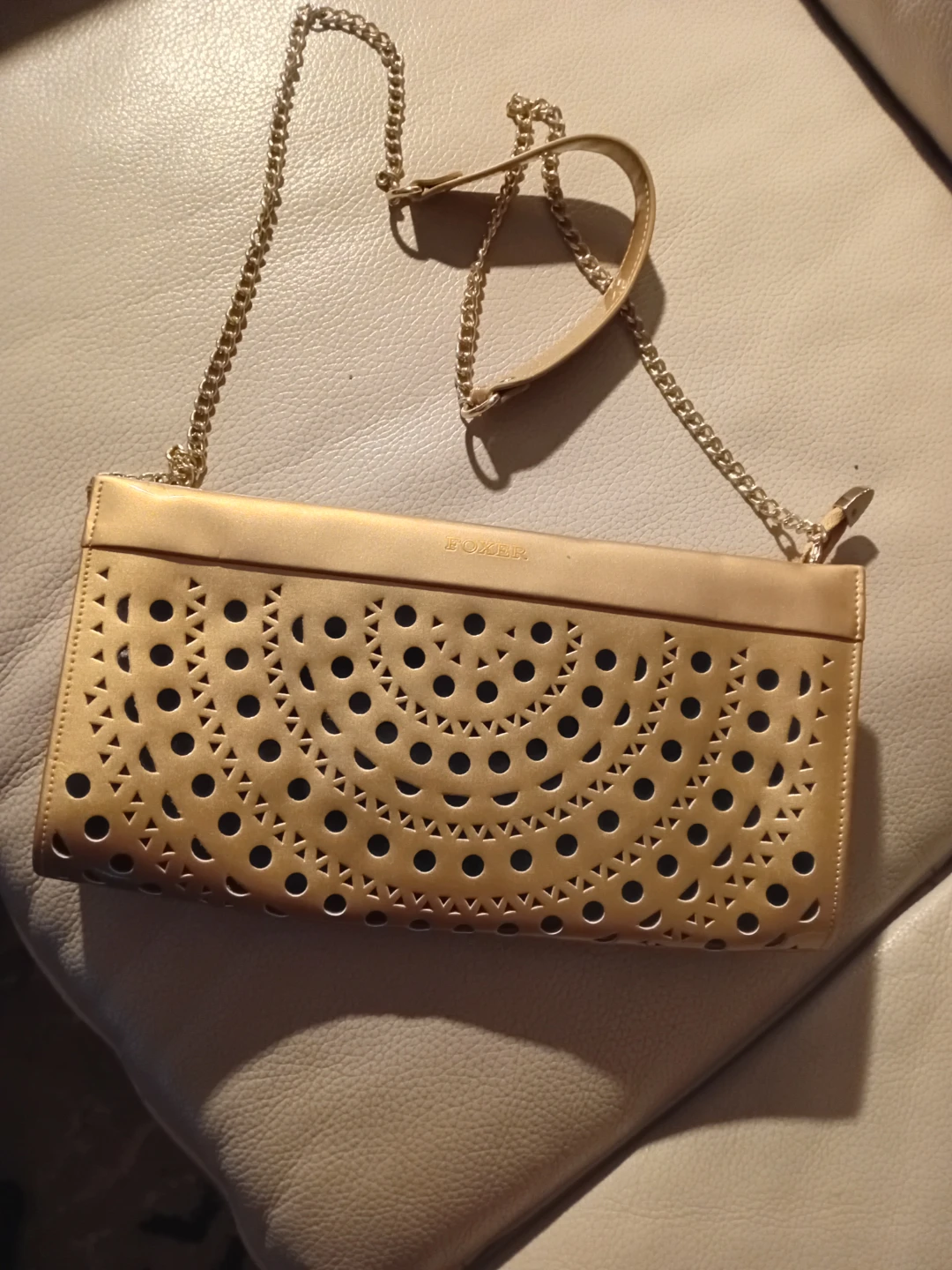 1 / 31 / 3Buy & SellFoxer Gold Clutch with Chain StrapFoxer Gold Clutch with Chain Strap$50Selling a Foxer gold clutch! It comes with a chain strap. It's in great condition and perfect for a night out or special occasionConditionLike newWHERE TO MEETCheck LocationView MapSELLERverifiedBiancaDanforth1000+258 reviews1 chats·0 favorites·18 viewsSEND CHAT TO SELLERHi Bianca! I’m interested in your listing.Hi Bianca! I’m interested in your listing.Get the Karrot app to chatSign In to chat