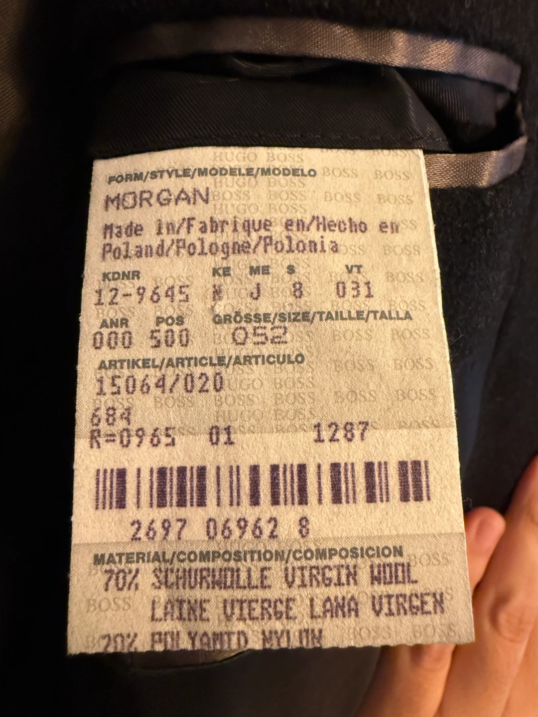 Selling a Hugo Boss coat in great condition! It's a size 52 (European sizing). The material is a blend of cashmere and virgin wool, making it super warm and comfy for the Canadian winter. It's a stylish dark grey colour, perfect for any occasion