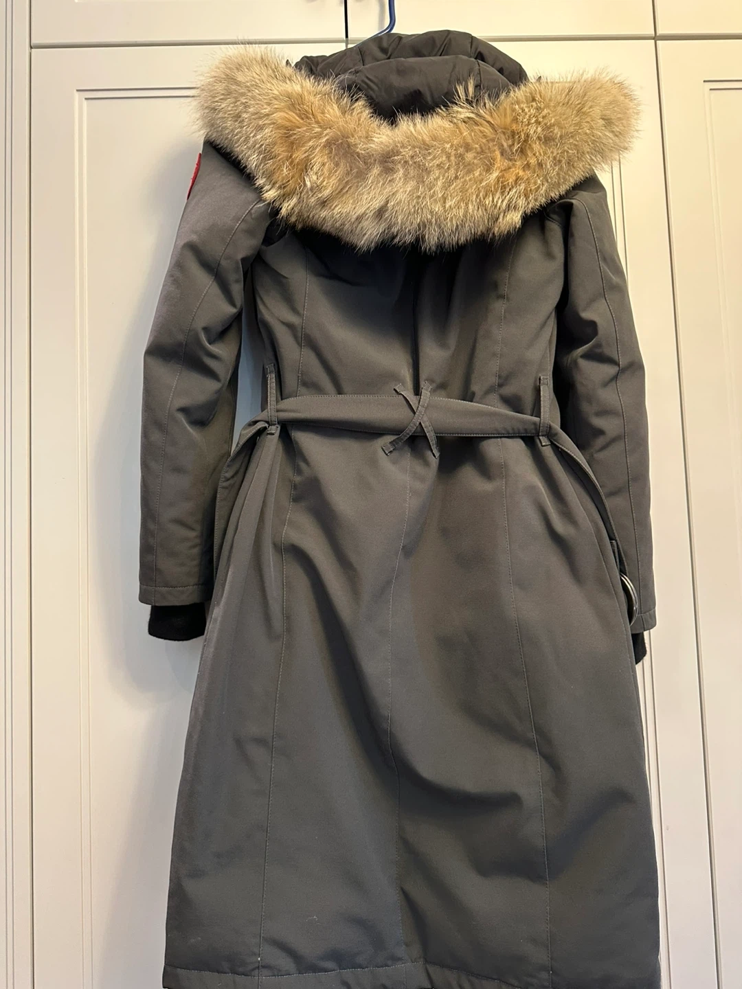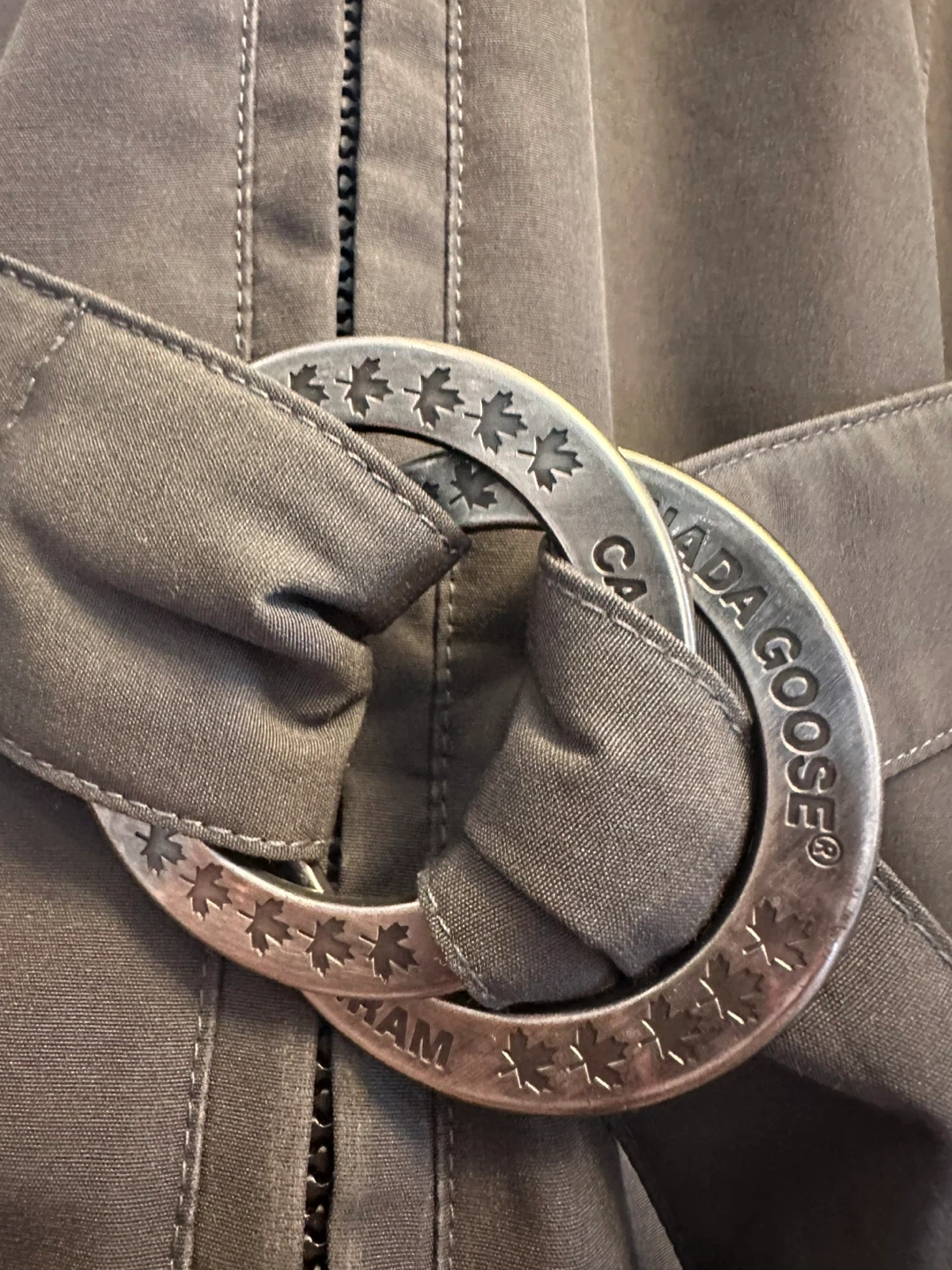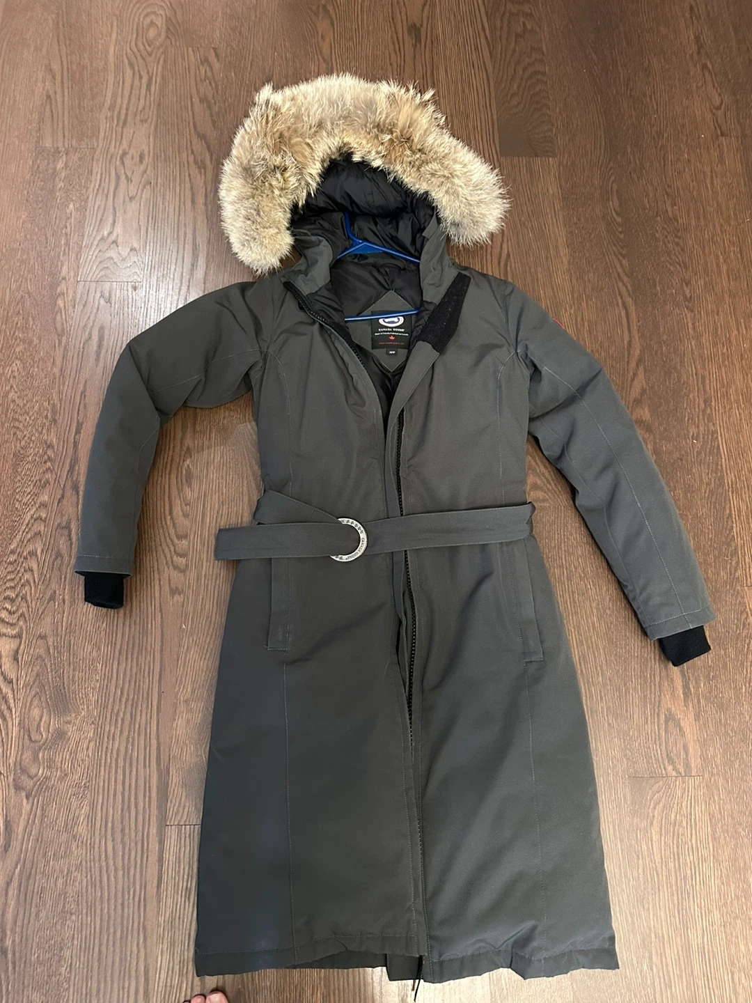 Selling a Canada Goose Whistler parka in size XS. It's in great condition and ready to keep you warm this winter! The jacket features a stylish belt with a unique buckle design. Perfect for those cold Canadian days!